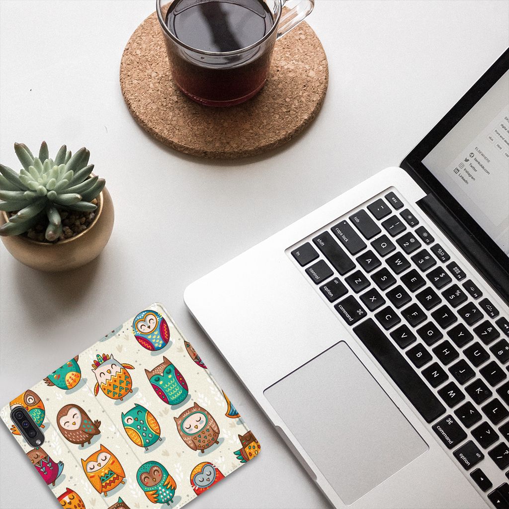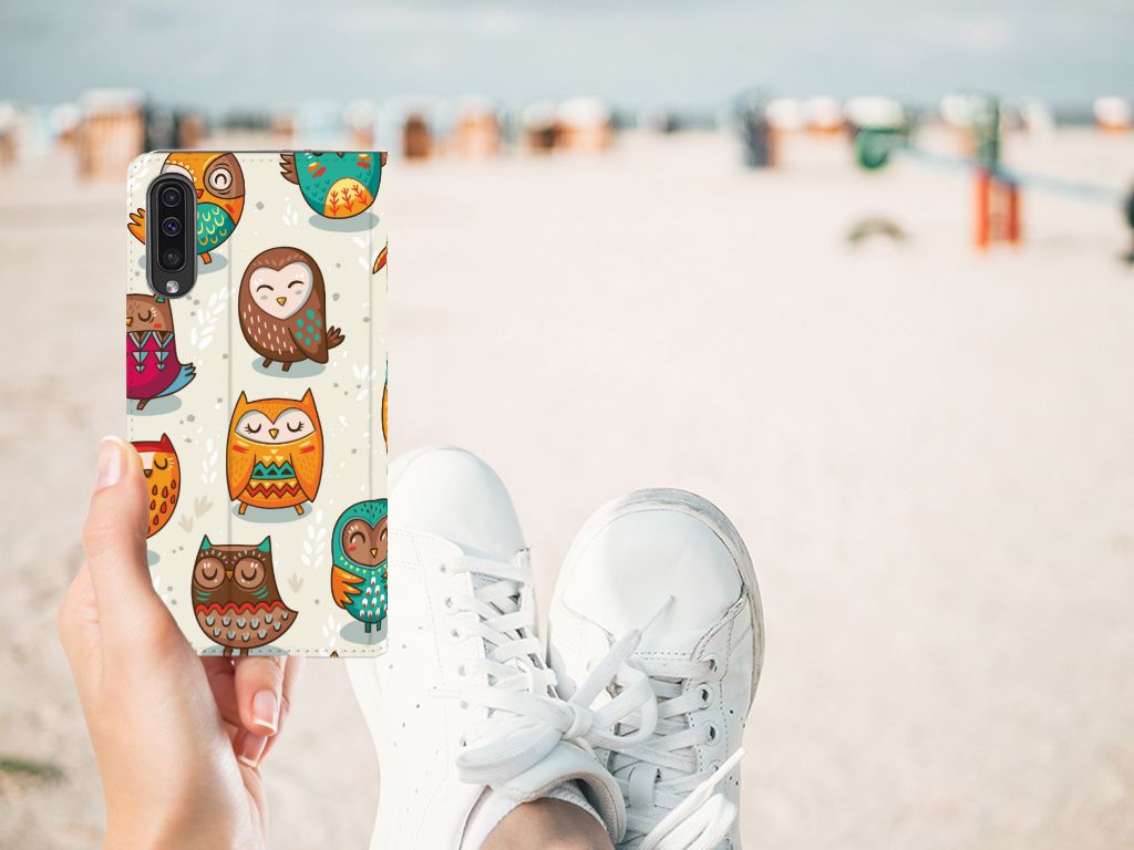 Deze Samsung Galaxy A50 Hoesje maken met Vrolijke Uilen is echt iets voor de nachtbrakers onder ons. De uil is zoals je weet bij uitstek een vogel die in de nachtelijke uren actief is. Ben jij ook iemand die s ’nachts tot leven komt, dan is deze stand case met uilen in felle kleuren echt iets voor jou. Als je tot in de late uurtjes op stap bent, komt het goed uit dat jouw smartphone aan alle kanten goed is beschermd met deze stand case met uilen. De case met uilen heeft een magnetische sluiting aan de binnenkant, waardoor de hoes niet openklapt als die uit je handen valt. Jouw creditcard of pinpas heb je als het goed is veilig opgeborgen in het vakje aan de binnenzijde. De houder aan de binnenzijde van de case met print van uilen is van het flexibele TPU. De wat ruigere types hebben veel baat bij deze stand case met uilen in felle kleuren.