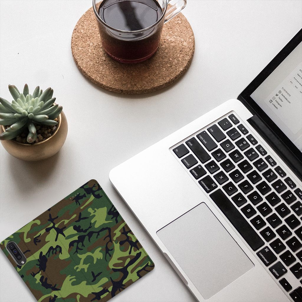 Voel je jezelf verbonden met het leger, dan zal deze Samsung Galaxy A50 Hoesje met Magneet je zeker bevallen. Het design hoesje beschikt namelijk over donkere camouflage kleuren. Deze worden vaak gebruikt door mensen die zich graag willen mengen in hun omgeving. Dit Army Dark hoesje is er dus voornamelijk in kleuren die in de natuur voorkomen, zodat je één wordt met je achtergrond. Beschermt de krijgsmacht volk en vaderland, dit hoesje in donkere camouflage kleuren zal jouw telefoon onder alle omstandigheden schadevrij houden. Met een hoesje in dit soort kleuren zal je niet zo snel opvallen. Wel is het echter een hele stoere case. Het design staat op een stand case. Deze case beschermt jouw telefoon aan alle kanten en beschikt over een 1 opbergvakje en een speciale standaard. Het hoesje wordt afgesloten met een magneet aan de binnenzijde. De houder aan de binnenzijde is van TPU. Alle zijden van de case worden bedrukt met donkere camouflage kleuren.