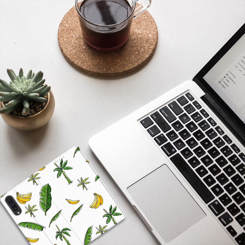 Heb jij al zin om op vakantie te gaan? Dat krijg je hoe dan ook als je één blik werpt op dit vrolijke hoesje voor je Samsung Galaxy A50 met Banana Tree design. Het fleurige tafereel van bananenbomen, bananenbladeren en bananen doet je gedachten afdwalen naar paradijselijke bountystranden met azuurblauwe zee en helderwitte zandpartijen. Kortom: dit hoesje is goed voor je humeur. Naast het luchtige design zijn daar nog meer redenen voor, want dankzij de stevige materialen weet je zeker dat dit Smart Cover je telefoon altijd optimaal beschermt. De solide hoes van PU-leer beschikt ook over een 1 pashouder en een speciale standaard. Het hoesje wordt afgesloten met een magneet aan de binnenzijde. De houder aan de binnenzijde is van TPU. Alle zijden worden bedrukt. Met dit hoesje breng je jezelf in zomerse sferen en gun je jezelf een krasvrije telefoon.