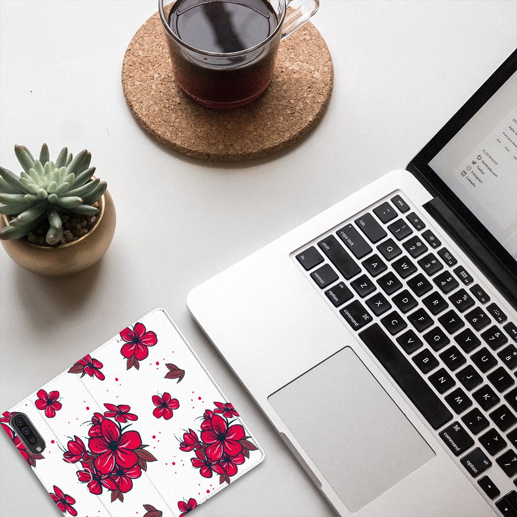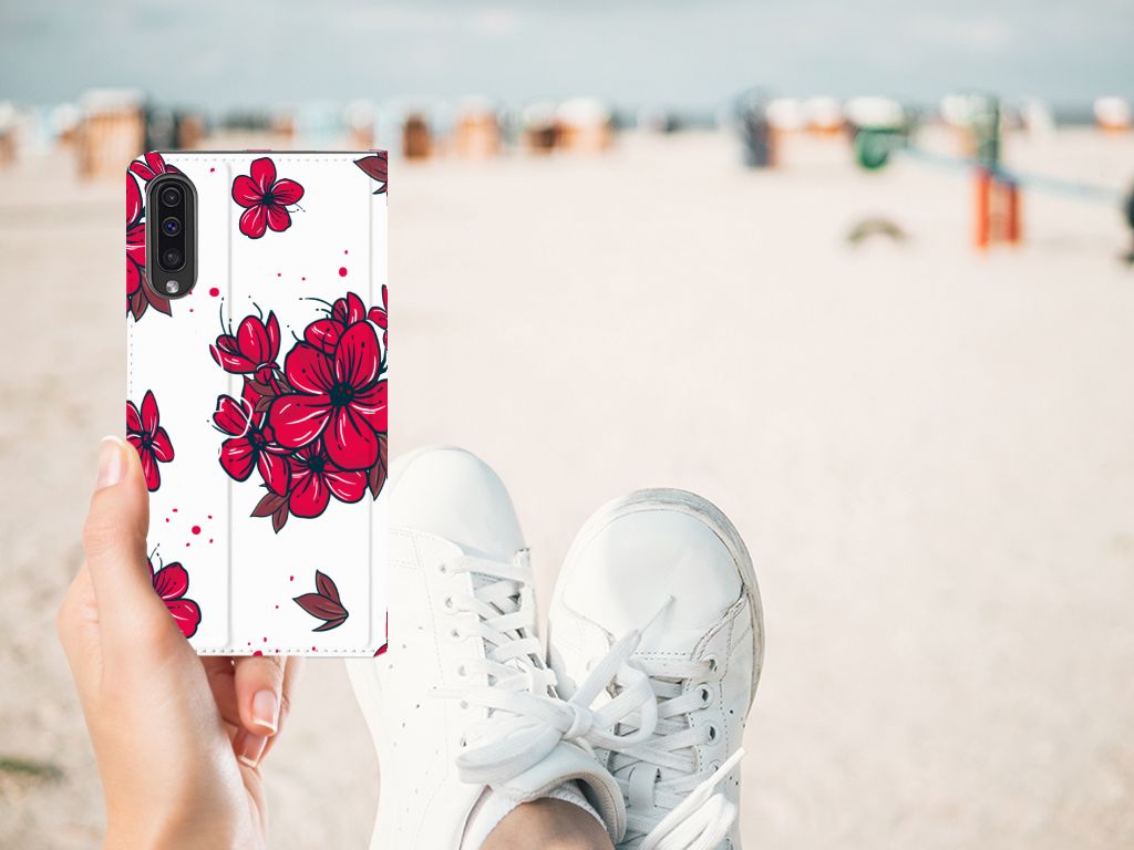 Wie denkt aan Japan, denkt al gauw aan die prachtige kersenbomen die in het begin van de lente in bloei staan en het land hullen in een prachtige zee van bloesem. Wie elke dag wil genieten van deze mooie kersenbloesem, kan natuurlijk ook kiezen voor dit mooie telefoonhoesje! Dankzij de witte achtergrond knallen de rode bloemetjes er mooi uit. Dit blossom red-design staat op een Smart Cover voor de Samsung Galaxy A50. Dit populaire smartphonehoesje met het heeft één vakje voor een pasje of briefgeld en is aan alle zijden bedrukt. Met de standcase zet je je telefoon gemakkelijk neer, zodat je je handen vrij hebt als je bijvoorbeeld een video wilt kijken. De binnenkant van de standcase is van grijs PU-leer. Dat is fijn, omdat je daardoor niet snel vlekken ziet op je hoesje.