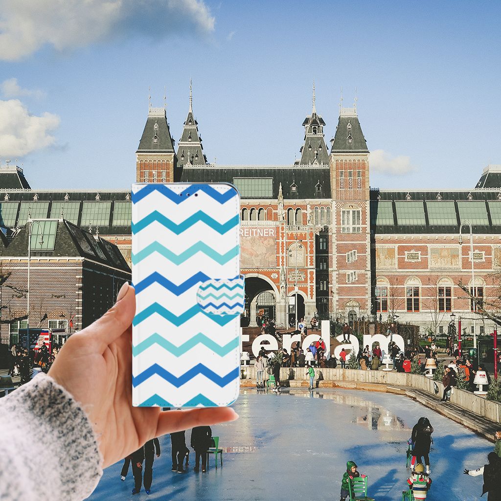 Dit zigzag blauwe design hoesje is speciaal ontworpen voor jou. We hebben bewust verschillende stijlen blauw gebruikt, zodat er voldoende sprake is van variatie. Dit blauwwitte Telefoon Hoesje ziet er super strak uit. Dat kan ook niet anders, als je weet dat onze zeer talentvolle designer er hoogstpersoonlijk voor verantwoordelijk is. Hij schudt wekelijks nieuwe designs uit zijn mouw en dit zigzag blauwe hoesje is een van zijn fraaiste creaties. Een heel dik design hoesje, al zeggen we het zelf. Valt dit blauwwitte design hoesje goed bij jou? Bestel het dan vandaag nog en je hebt het morgen in huis. Het design staat op een boekhoesje. Dit smartphonehoesje beschermt jouw Samsung Galaxy A50 aan alle zijden en beschikt over verschillende opbergvakjes voor pasjes en briefgeld. De case sluit perfect af met het lipje aan de buitenkant. De houder aan de binnenzijde is van TPU. Alle zijden van het hoesje worden bedrukt, inclusief het lipje.