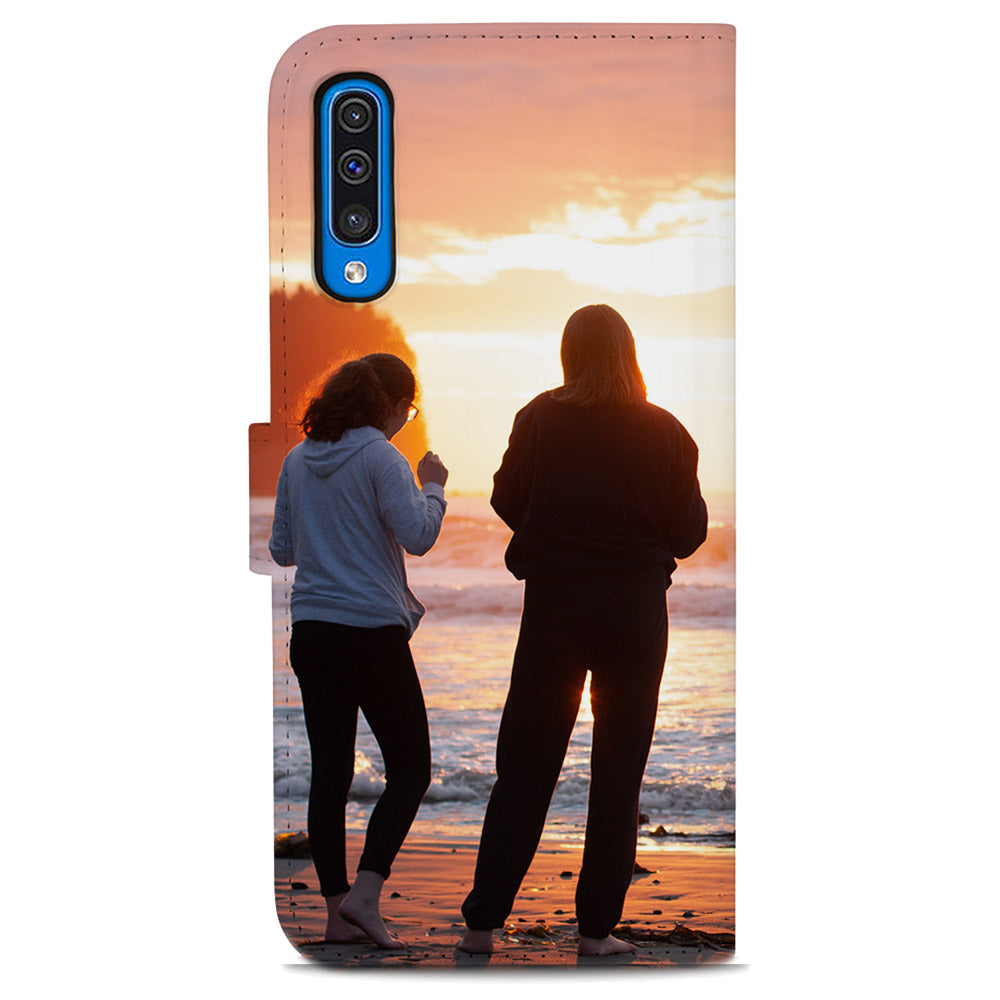 Samsung Galaxy A50 Telefoonhoesje Maken met Foto. Ontwerp nu je meest dierbare foto op een hoesje naar keuze en ontvang hem binnen enkele werkdagen thuis. Onthoud wel dat het boekhoesje geheel (voor- en achterkant, rug en afsluitlipje) wordt bedrukt en je dus niets van het hoesje meer terug zal zien behalve je prachtig ontwerp. Wij zorgen met onze hoesje er ook voor dat je altijd 2 pasjes en eventueel wat briefgeld mee kan nemen in de 3 handige opbergvakjes aan de binnenzijde van het hoesje. Speciaal op maat gemaakt voor jouw Samsung Galaxy A50 telefoon en gedacht aan de openingen voor de knoppen en poorten. Bescherm je telefoon tegen mogelijke beschadigingen! Klik op de button ‘ontwerp nu’ en ervaar het zelf!