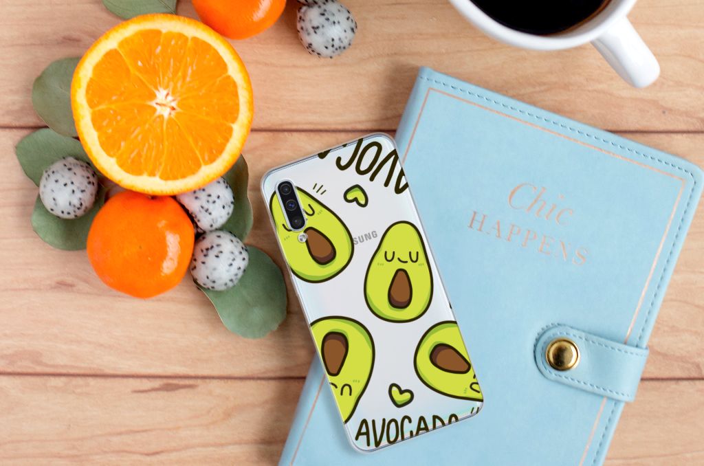 Avocado’s zijn niet alleen heel erg goed voor je, ze zijn ook super leuk op je telefoonhoesje. Dit unieke design vol schattige avocado’s zal jou en iedereen om je heen meteen opvrolijken. Nog een voordeel van dit design: deze avocado’s bederven nooit! Dit leuke Avocado Singing-ontwerp staat op een Telefoonhoesje met Naam voor de Samsung Galaxy A50. Met deze vrolijke groene vruchten op je hoesje val jij zeker op. TPU is flexibel en onbreekbaar. Zo is je telefoon aan de achterkant en de randen heel goed beschermd. De case is aan de bovenkant bedrukt, de randen blijven transparant. Het TPU-hoesje is perfect te combineren met een screenprotector, zo zijn je telefoon en je beeldscherm perfect beschermd.