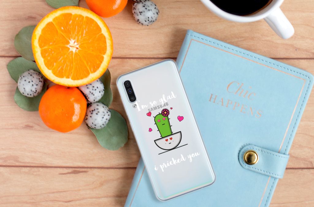 Met de Cactus haal je een vleugje woestijn in je woonkamer. De plant is oer, stoer en verrassend, dankzij opvallende vormen en bloemen. De cactus op dit design hoesje is om verliefd op te worden. Dat straalt deze Telefoonhoesje met Naam, die jouw Samsung Galaxy A50 goed beschermt, echt wel uit. Geen plant zo decoratief en surrealistisch als de cactus. Uit een grijsgroene basis kan een knalroze bol groeien en tussen de stekels kunnen schitterende bloemen verschijnen. Een prachtige manier dus om je telefoon te beschermen, deze schattige TPU case met design Cactus Glad. De hoes is ook nog eens zeer praktisch, mede door het buigzame materiaal en de uitsparingen. Als je telefoon met het TPU hoesje uit je hand valt, stuitert het als het ware meteen weer terug en zal het scherm in tact blijven. De case heeft namelijk opstaande randen aan de voorkant. Alleen de bovenkant van de case wordt bedrukt, de zijkanten zijn doorzichtig.