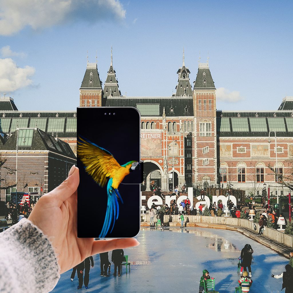 Samsung Galaxy A50 Telefoonhoesje met ruimte voor 3 pasjes Papegaai