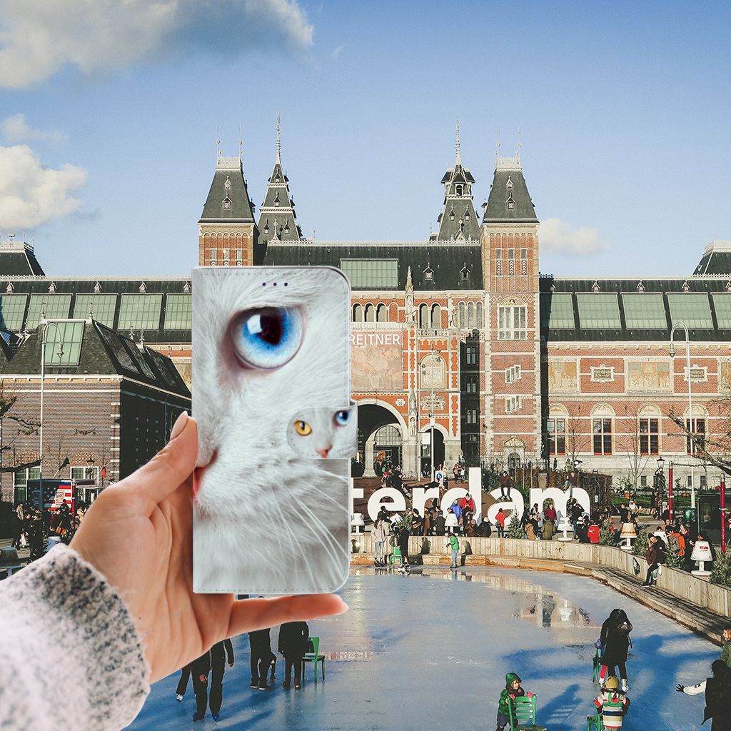 Samsung Galaxy A50 Telefoonhoesje met magnetisch lipje als sluiting Witte Kat