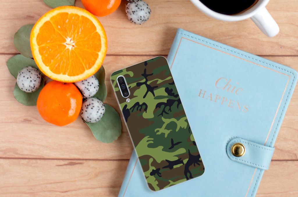 Voel je jezelf verbonden met het leger, dan zal deze Samsung Galaxy A50 TPU bumper je zeker bevallen. Het tpu hoesje beschikt namelijk over donkere camouflage kleuren. Deze worden vaak gebruikt door mensen die zich graag willen mengen in hun omgeving. Dit Army Dark hoesje is er dus voornamelijk in kleuren die in de natuur voorkomen, zodat je één wordt met je achtergrond. Beschermt de krijgsmacht volk en vaderland, dit hoesje in donkere camouflage kleuren zal jouw telefoon onder alle omstandigheden schadevrij houden. Met een hoesje in dit soort kleuren zal je niet zo snel opvallen. Het design staat op een TPU case. Dit hoesje wordt alleen aan de bovenkant bedrukt met donkere camouflage kleuren en is zeer flexibel. De randen van het hoesje blijven transparant.