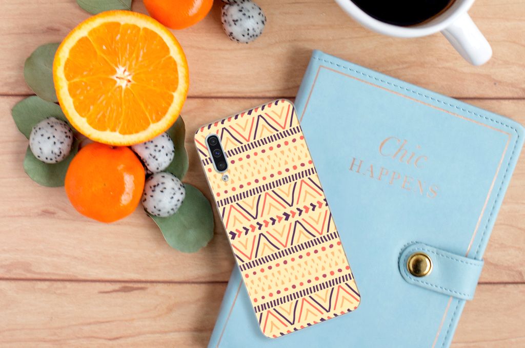 De Azteken leefden tussen 1200 en 1521 in het huidige Mexico. De mooie Aztec-patronen waar zij bekend om stonden, zien we nu nog op kleding, stoffen en tassen. Wie had toen kunnen bedenken dat we diezelfde prints honderden jaren later zelfs op een telefoonhoesje zouden vinden? Dit kleurrijke Aztec Yellow-hoesje is perfect voor iedereen die een stukje geschiedenis bij zich wil dragen maar ook gewoon een mooi patroon op zijn hoesje wil. Dit vrolijke, kleurrijke ontwerp staat op een TPU bumper voor de Samsung Galaxy A50. TPU is flexibel en onbreekbaar. Zo is je telefoon aan de achterkant en de randen heel goed beschermd. De case is aan de bovenkant bedrukt, de randen blijven transparant.