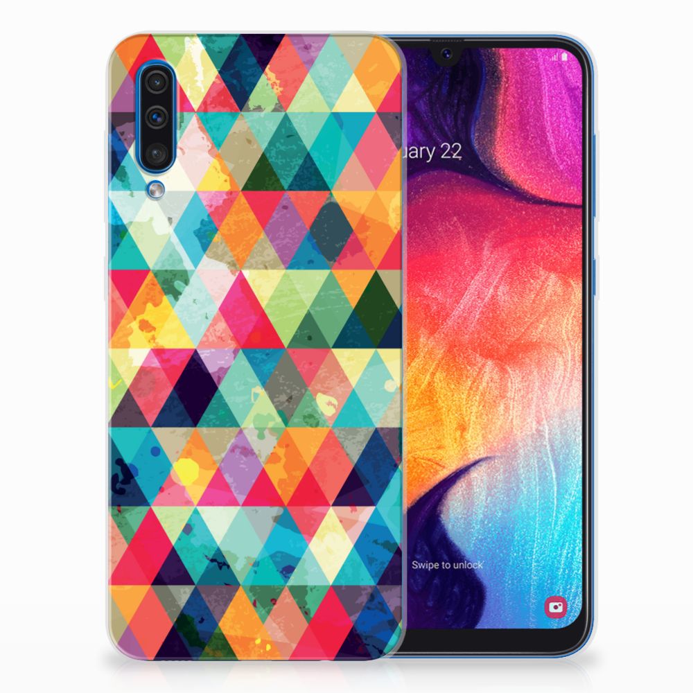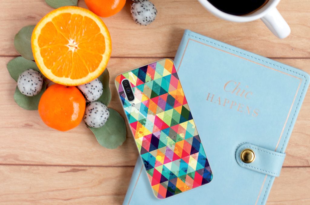 Van dit geruite design hoesje moet je een beetje houden. Maar als je het eenmaal in bezit hebt, ben je waarschijnlijk binnen no time verkocht. Het design heeft ruitjes in alle kleuren van de regenboog en door de grijze achtergrond kan het hoesje enigszins druk overkomen. Maar tegelijkertijd is dit de kracht van het hoesje. Met dit design hoesje Geruit zal je namelijk heel erg opvallen. Dit is voor veel vooral jonge smartphone gebruikers een belangrijk voordeel. Deze geruite print staat op een Samsung Galaxy A50 TPU bumper. Dit zeer flexibele smartphone hoesje heeft alle nodige uitsparingen en past altijd in je broekzak. De case is aan de bovenkant bedrukt, de randen blijven transparant.