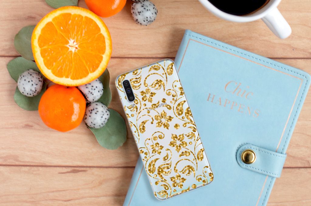Ben je op zoek naar een uniek telefoonhoesje voor je Samsung Galaxy A50? Dan ben je bij B2C Telecom aan het juiste adres! Speciaal voor jou hebben we dit prachtige Gouden Bloemen design in onze collectie hoesjes opgenomen. Het design wordt bedrukt op een TPU Case en is gemaakt van flexibel rubber. Het design wordt alleen aan de bovenkant van het hoesje bedrukt en de randen blijven transparant. Aan de zijkanten zijn uitsparingen gemaakt waardoor je met gemak alle knoppen en poorten kunt bedienen. Wij adviseren om dit hoesje in combinatie met een screenprotector te gebruiken voor een langere levensduur van je telefoon. Wil je dit design hoesje nog iets extra's geven? Voeg dan gratis je naam of een quote toe! Is dit design hoesje toch niet helemaal wat je zocht? Ontwerp dan zelf een hoesje in ons ontwerpprogramma.