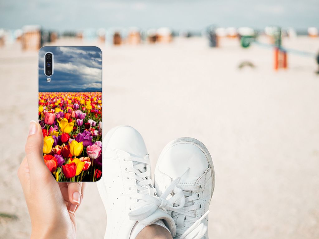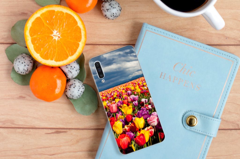 De tulp is een oer-Nederlandse bloem en heeft een lange geschiedenis. Deze Samsung Galaxy A50 TPU Case met Tulpen ziet er bijzonder kleurrijk uit. Dit fleurige smartphone hoesje geeft een bijzondere bescherming van jouw apparaat. Tulpen zijn ideaal voor een kleurrijk begin van het tuinseizoen. Iedereen wordt er vrolijk van om te zien hoe deze bloemen het voorjaar kleur geven en het begin van de warmere tijd van het jaar aankondigen. Dan kan het toch niet anders of jij wordt heel erg blij van deze tpu case met tulpen? Deze tpu case is zeer flexibel en past altijd in je broekzak. Het materiaal is zeer elastisch en onbreekbaar. De case wordt niet aan alle zijden bedrukt met tulpen. De randen blijven transparant. Je kunt ook zelf een tpu case maken met daarop jouw favoriete bloem.