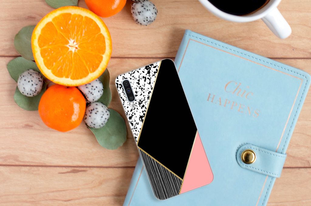 - Met een tpu-siliconen hoesje met roze, zwarte en witte vlakken blijft jouw telefoon in tact.