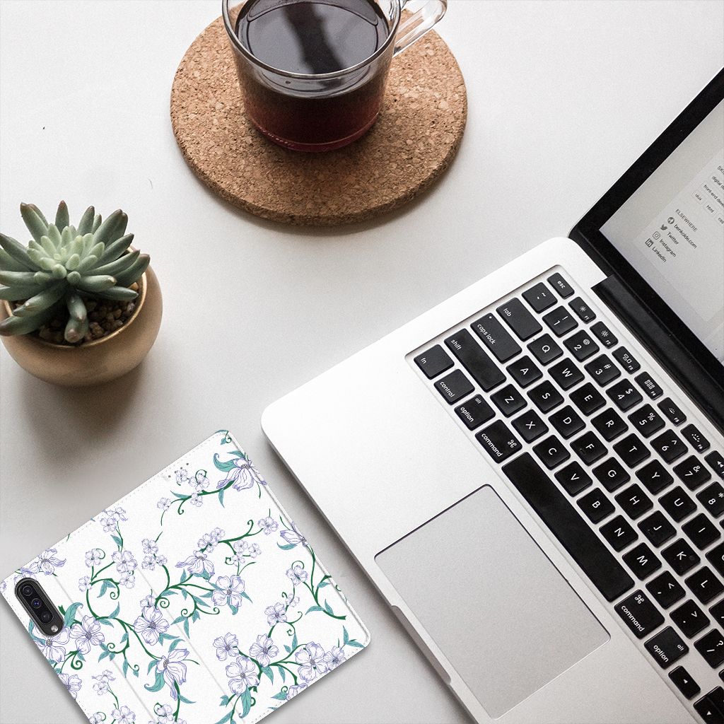 Witte bloemen staan voor puurheid, frisheid, helderheid en eenvoud. Geen wonder dus dat ze al heel lang populair zijn en ook prachtig staan op een telefoonhoesje. Niet iedereen houdt immers van kleurrijke designs. Toch graag bloemetjes op je Smart Cover maar zonder bonte kleuren? Dan is dit hoesje voor de Samsung Galaxy A50 perfect voor jou. Dit populaire smartphonehoesje heeft één vakje voor een pasje of briefgeld en is aan alle zijden bedrukt. Met de standcase zet je je telefoon gemakkelijk neer, zodat je je handen vrij hebt als je bijvoorbeeld een video wilt kijken. De binnenkant van de standcase is van grijs PU-leer. Dat is fijn, omdat je daardoor niet snel vlekken ziet op je hoesje.