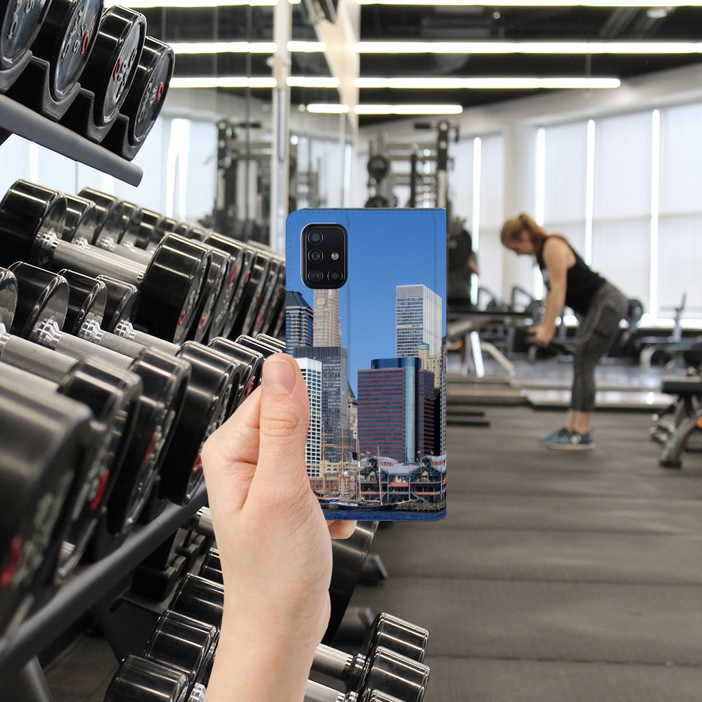 Natuurlijk mag een hoesje met de print van New York niet in onze collectie design hoesjes ontbreken. New York is immers de grootste stad van de Verenigde Staten van Amerika en een van de belangrijkste wereldsteden. Deze stad, ook wel New York City of NYC genoemd, moet je gewoon minstens eenmaal in je leven bezocht hebben. Doe je dat, dan gaat je telefoon natuurlijk mee en deze bescherm je met deze leuke Samsung Galaxy A51 Book Cover met print van New York. Je pasje kun je in het opbergvakje aan de binnenzijde stoppen en de case sluit perfect af dankzij de magneet. The City That Never Sleeps, zo wordt New York ook wel genoemd. De print op deze stand case met print van New York, die een houder heeft van TPU, oogt zeer stijlvol.