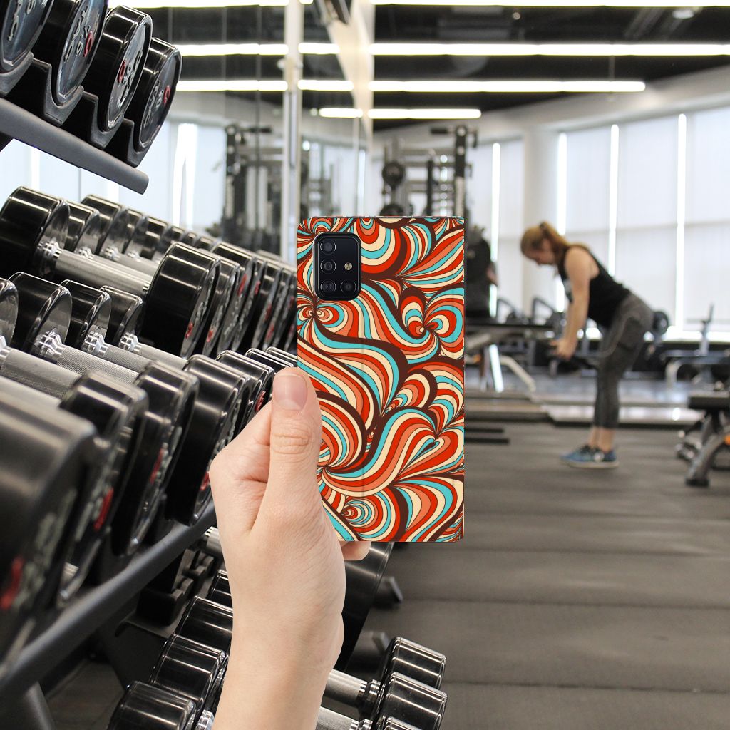 Voor de mensen die een beetje artistiek zijn, is er deze Samsung Galaxy A51 Bookcase met kleuren in een soort van retro stijl. Je gaat een beetje terug in de tijd met deze stand case in allerlei felle kleuren en vreemde vormen. De opdruk op dit design hoesje is zeer duurzaam en gaat net zo lang mee als de case zelf. De Retro print wordt in ons eigen magazijn op het hoesje gezet, met speciale uv-inkt. De stand case heeft voldoende uitsparingen dus je hoeft de telefoon nooit uit dit retro design hoesje te halen. Deze case beschermt jouw telefoon aan alle kanten en beschikt over 1 opbergvakje en een speciale standaard. Het hoesje wordt afgesloten met een magneet aan de binnenzijde. De houder aan de binnenzijde van de retro hoes is van TPU.