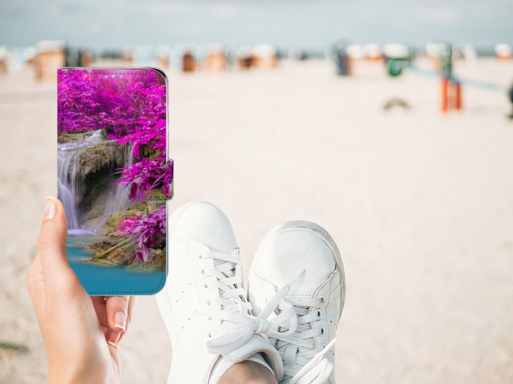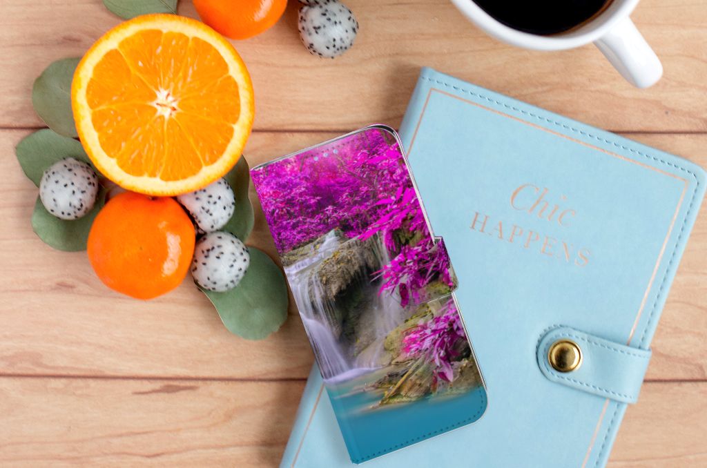 Op deze Samsung Galaxy A51 Flip Cover zie je een kalme waterval en de achtergrond is gevuld met paarse bomen. Samen creëert dit een prachtig en kleurrijk spektakel, iets wat je graag op je Samsung Galaxy A51 hoesje ziet. Wanneer je hiernaar kijkt, word je direct kalm. Als jij je even boos of verdrietig voelt, hoef je alleen maar naar jouw boekhoesje te kijken om weer blij te worden. Ook jouw telefoon zal blij zijn met deze Flip Cover aangezien deze goede bescherming biedt. Als jij je telefoon per ongeluk laat vallen, is er niets aan de hand. Het hoesje zorgt ervoor dat de telefoon intact blijft. Zelfs als hij op het beeldscherm zou vallen, is er dankzij de magnetische sluiting, niets aan de hand.