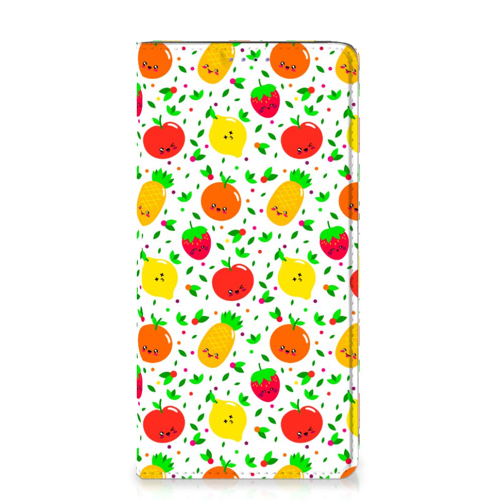 Een fris, fruitig en vrolijk hoesje, deze case met afbeeldingen van aardbeien, ananassen, appels, sinaasappels en citroenen. Minstens twee stuks fruit per dag wordt aanbevolen als dagelijkse hoeveelheid voor de mens. Dit verkleint de kans op allerlei ziekten. Dus met het aantal stukken fruit op de Samsung Galaxy A51 Flip Style Cover zou je wel een maandje zoet moeten zijn. Met het hoesje zelf kun je je hele leven doen, dit is namelijk niet stuk te krijgen. Dit komt door het sterke en flexibele materiaal waarvan het gemaakt is. De vrolijk stemmende case het desing Fruits maakt jouw telefoon dus zeer duurzaam. Zorg ervoor dat jouw smartphone gezond blijft en kies voor dit hoesje met frivool fruit. Een stand case met fruit beschermt jouw telefoon aan alle kanten en beschikt over een 1 opbergvakje en een speciale standaard. Het hoesje met fruit wordt afgesloten met een magneet aan de binnenzijde. De houder aan de binnenzijde is van TPU.