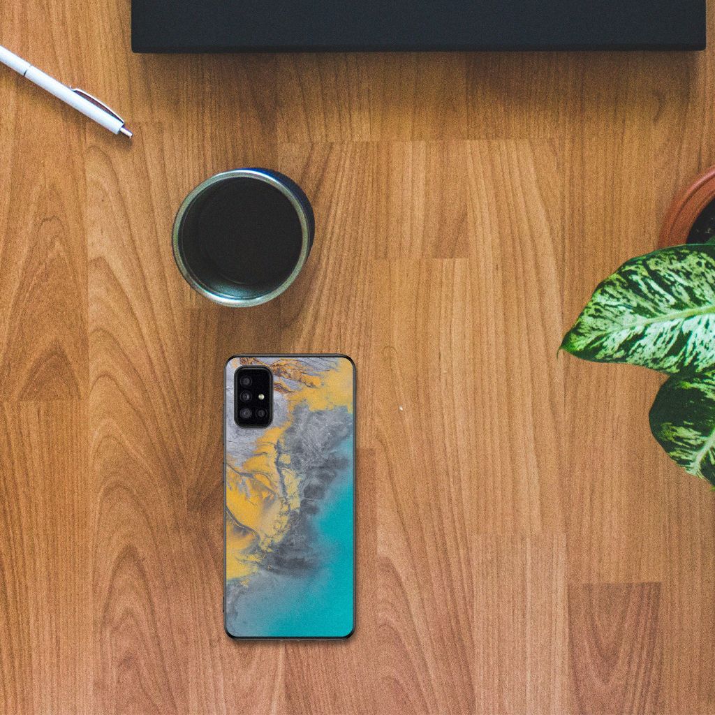 Samsung Galaxy A51 TPU Siliconen Hoesje Marmer Zwart - Origineel Cadeau Vader