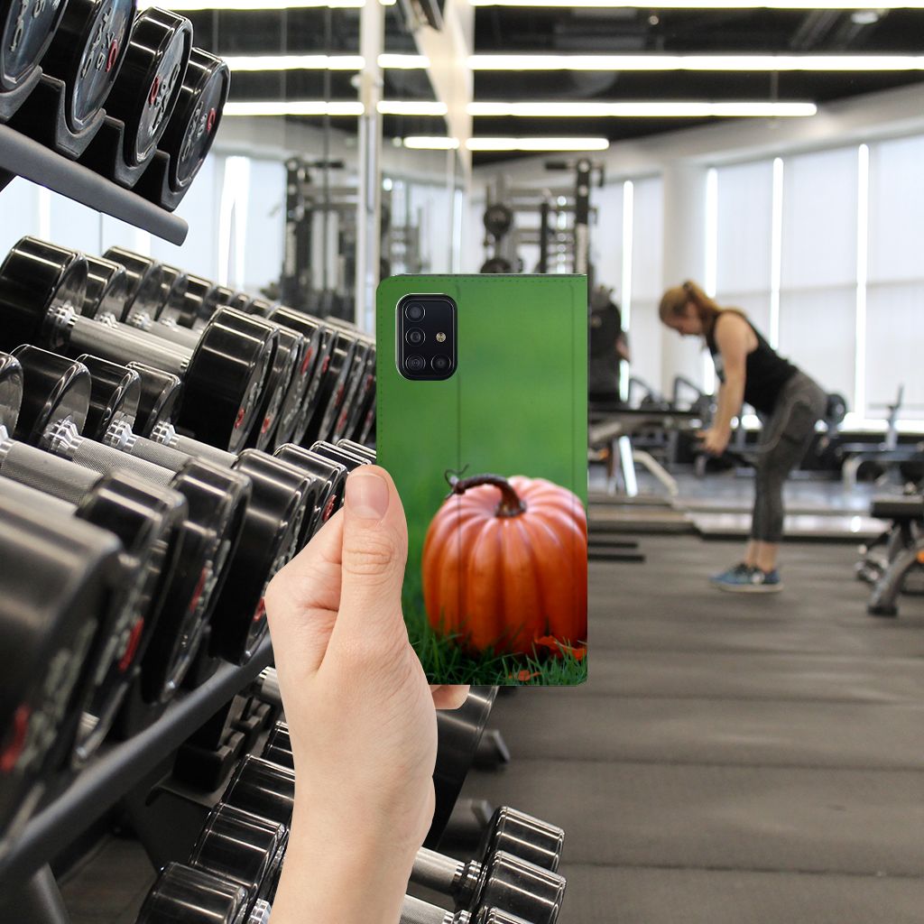Een huisdier is goed voor je hart: de hoeveelheid stress in je lijf kan aanzienlijk verlagen als je een kat hebt rondlopen. Zelfs het aaien van een kat kan het stressniveau in je lijf al doen verlagen. De kat op dit smartphone hoesje is sowieso zeer aaibaar, gezien de blik en de houding van het dier. De herfstachtige bladeren en de pompoen geven dit stand hoesje met design een natuurlijke uitstraling. Jouw smartphone is met een Samsung Galaxy A51 Hoesje maken zeer duurzaam te noemen. Er is geen betere bescherming dan dit hoesje, dat ook nog eens 1 opbergvakje heeft en een standaard. Alle zijden van dit hoesje zijn bedrukt. Het hebben van een kat kan verzachtend werken, bijvoorbeeld na een heftige gebeurtenis. Het hoesje is aan de binnenzijde van TPU (houder).