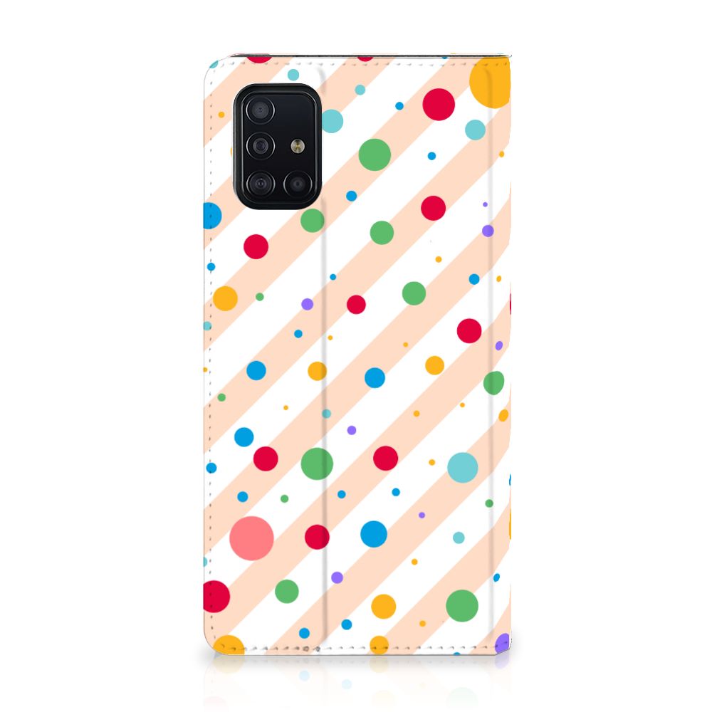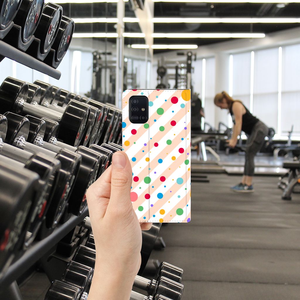 Een Samsung Galaxy A51 Hoesje met Magneet met verschillende kleuren stippen is een schitterende bescherming van jouw smartphone. De stand case met het design Dots in alle kleuren van de regenboog komt voor jou als geroepen. Maak je geen gebruik van dit zeer mooie hoesje, dan kan het met jouw smartphone een beetje beroerd aflopen. Dit mooie stand hoesje met verschillende kleuren stippen zorgt voor een volledige bescherming van je smartphone en wordt aan alle zijden bedrukt. Dankzij de speciale standaard kun je rustig achteroverleunend filmpjes bekijken terwijl je je handen vrij hebt. Verder is de houder aan de binnenzijde van TPU. Jouw telefoon is dus zeer goed opgeborgen en kan geen kant op. Met een hoesje met stippen in verschillende kleuren op alle zijden blijft jouw telefoon volledig in tact. Heb je liever een stand case met stippen in andere opvallende kleuren? Ontwerp dan zelf case met je eigen foto’s en teksten!