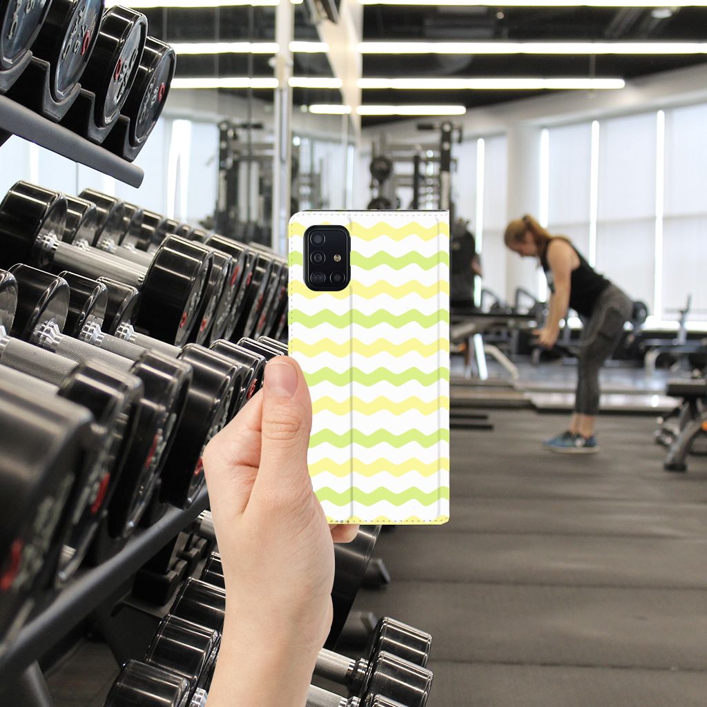 Dit Waves Yellow design hoesje met licht groene en gele golven is speciaal ontworpen voor jouw telefoon. We hebben een vleugje lichtgeel toegevoegd, zodat de case er een beetje spannender en leuker uitziet. Dit licht groene hoesje met licht groene golven ziet er oogstrelend uit. Het wordt in ons eigen magazijn bedrukt, in zeer goede kwaliteit inkt. Wij kunnen dus een zeer duurzaam hoesje met licht groene golven garanderen. Dit hele mooie Samsung Galaxy A51 Hoesje met Magneet heeft vele extra’s. Is dit licht groene design hoesje je op het lijf geschreven? Grijp dan nu je kans. Deze stand case met licht groene golven beschermt jouw telefoon aan alle kanten en beschikt over een 1 opbergvakje en een speciale standaard. Het licht groene hoesje wordt afgesloten met een magneet aan de binnenzijde. De houder aan de binnenzijde is van het flexibele TPU. Alle zijden van de stand case worden bedrukt.