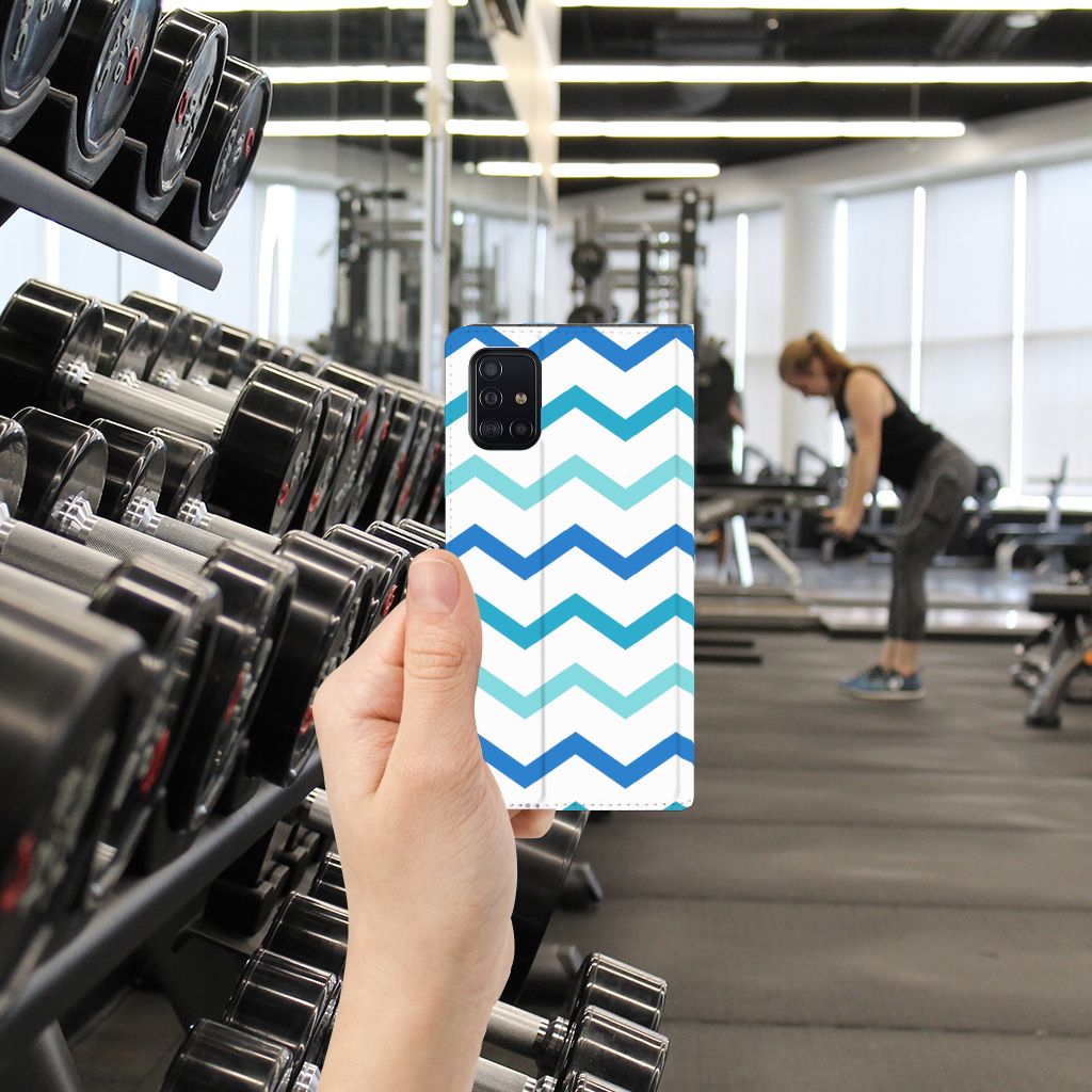 Dit zigzag blauwe design hoesje is speciaal ontworpen voor jou. We hebben bewust verschillende stijlen blauw gebruikt, zodat er voldoende sprake is van variatie. Dit blauwwitte Hoesje met Magneet ziet er super strak uit. Dat kan ook niet anders, als je weet dat onze zeer talentvolle designer er hoogstpersoonlijk voor verantwoordelijk is. Hij schudt wekelijks nieuwe designs uit zijn mouw en dit zigzag blauwe hoesje is een van zijn fraaiste creaties. Een heel dik design hoesje, al zeggen we het zelf. Valt dit blauwwitte design hoesje goed bij jou? Bestel het dan vandaag nog en je hebt het morgen in huis. Het design staat op een stand case. Deze case beschermt jouw Samsung Galaxy A51 aan alle kanten en beschikt over een 1 opbergvakje en een speciale standaard. Het hoesje wordt afgesloten met een magneet aan de binnenzijde. De houder aan de binnenzijde is van TPU. Alle zijden van de stand case worden bedrukt.