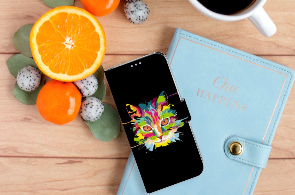 Als jij van katten houdt en op zoek bent naar een uniek hoesje, dan is dit het hoesje wat je wilt hebben. Op de voorkant van dit Leuk Hoesje vind je namelijk een mooie afbeelding van een kat in alle kleuren van de regenboog op een zwarte klassieke achtergrond. Naast dat het een mooi hoesje betreft, is het ook nog eens ontzettend handig. Zo kun je in deze bookcase wel twee á drie pasjes en briefgeld kwijt. Hiermee kun je jouw belangrijkste bezittingen op een plek bewaren in het boekhoesje en kun je jouw portemonnee voortaan thuislaten. Een bookcase heeft daarnaast ook nog het voordeel dat jouw telefoon aan alle zijdes wordt beschermd in dit leuke hoesje, dubbel zo handig dus!