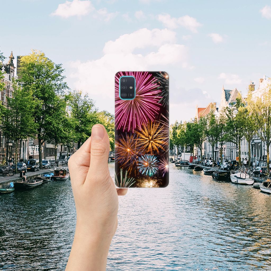 Deze Samsung Galaxy A51 Silicone Back Cover levert gegarandeerd Vuurwerk op. Kijk alleen al eens naar de print van siervuurwerk, in zeer veel verschillende kleuren. Als je dit hoesje ziet kun je bijna niet geloven dat sommige gemeenten in Nederland overwegen om vuurwerk te verbieden. Er gebeuren weliswaar ongelukken mee, maar zoiets schitterends als op deze tpu case met vuurwerk wil je toch gewoon niet missen. Bovendien beschermt dit hoesje jouw smartphone ook nog eens erg goed. De bovenkant van dit hoesje wordt bedrukt, de zijkanten blijven doorzichtig. De case is gemaakt van schokabsorberend materiaal en past altijd in je broekzak. Onder alle omstandigheden zal deze TPU case perfect functioneren, ook als je met nieuwjaar vuurwerk aan het afsteken bent. Zorg dan overigens wel dat je zelf ook voldoende afgeschermd bent van het vuurwerk.
