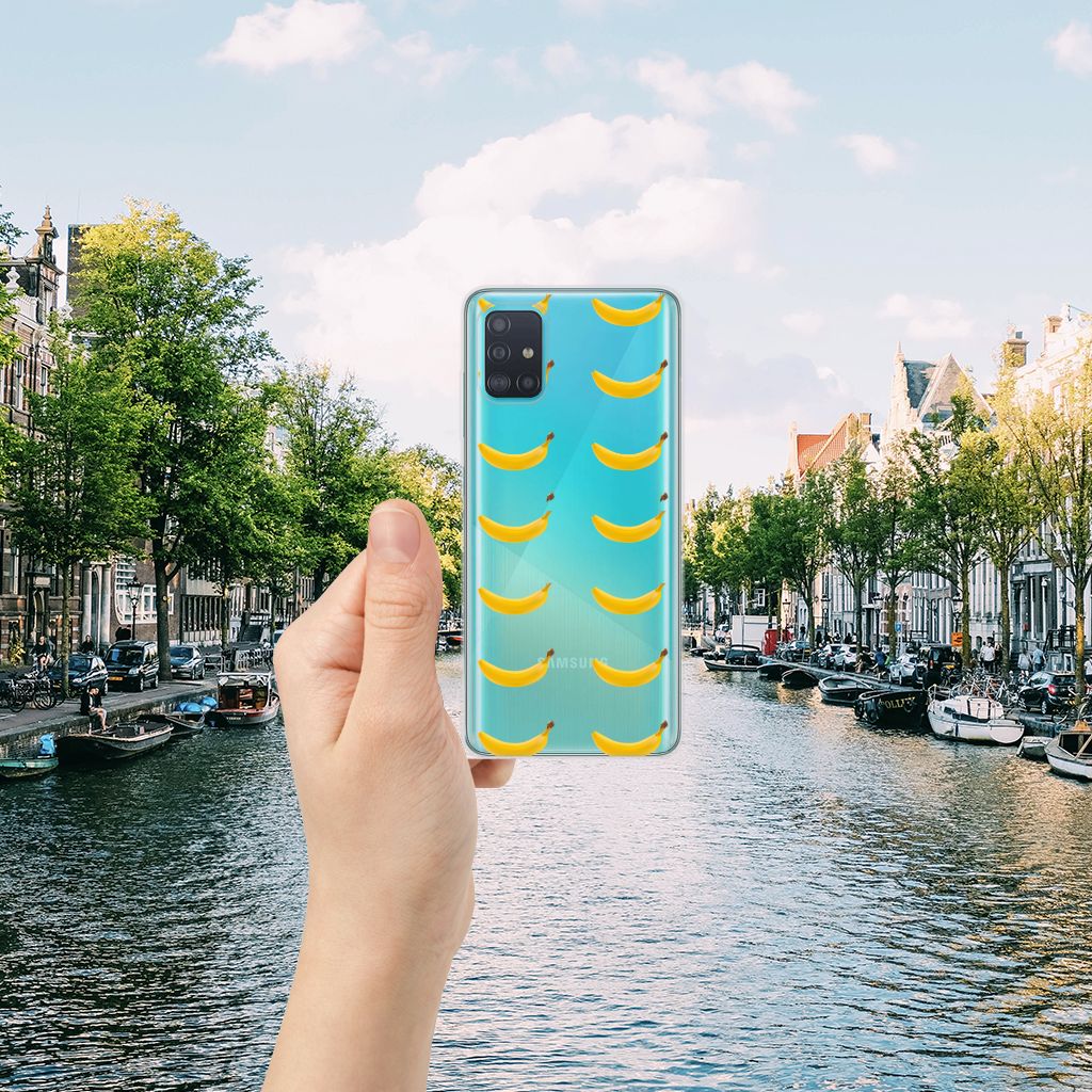 Bananen zitten tjokvol natuurlijke energie-oppeppers. Fructose, glucose, vezels… om er maar eens een paar te noemen. Een banaan is zo’n energiebom, dat wanneer je er twee eet je genoeg energie verzameld hebt om anderhalf uur vol te sporten. Deze vrucht geeft power, daarom misstaan ze ook niet op deze leuke Samsung Galaxy A51 Siliconen Case. Met het aantal bananen dat op dit hoesje staat heb je energie voor een hele maanden of misschien wel een paar maanden. Jouw smartphone blijft zijn kracht behouden als je kiest voor dit design hoesje met bananen. Het grijswit geblokte patroon op de achtergrond geeft nog wat extra’s aan de banaan. Altijd als een print van een banaan op je hoesje willen hebben? Dit is je kans. De bananen staan op een TPU case. Dit hoesje wordt alleen aan de bovenkant bedrukt en is zeer flexibel. Met het aantal bananen dat op dit hoesje staat heb je energie voor een hele maanden of misschien wel een paar maanden. De randen van het hoesje blijven transparant en worden niet bedrukt. Met dit hoesje past jouw telefoon altijd in je broekzak.