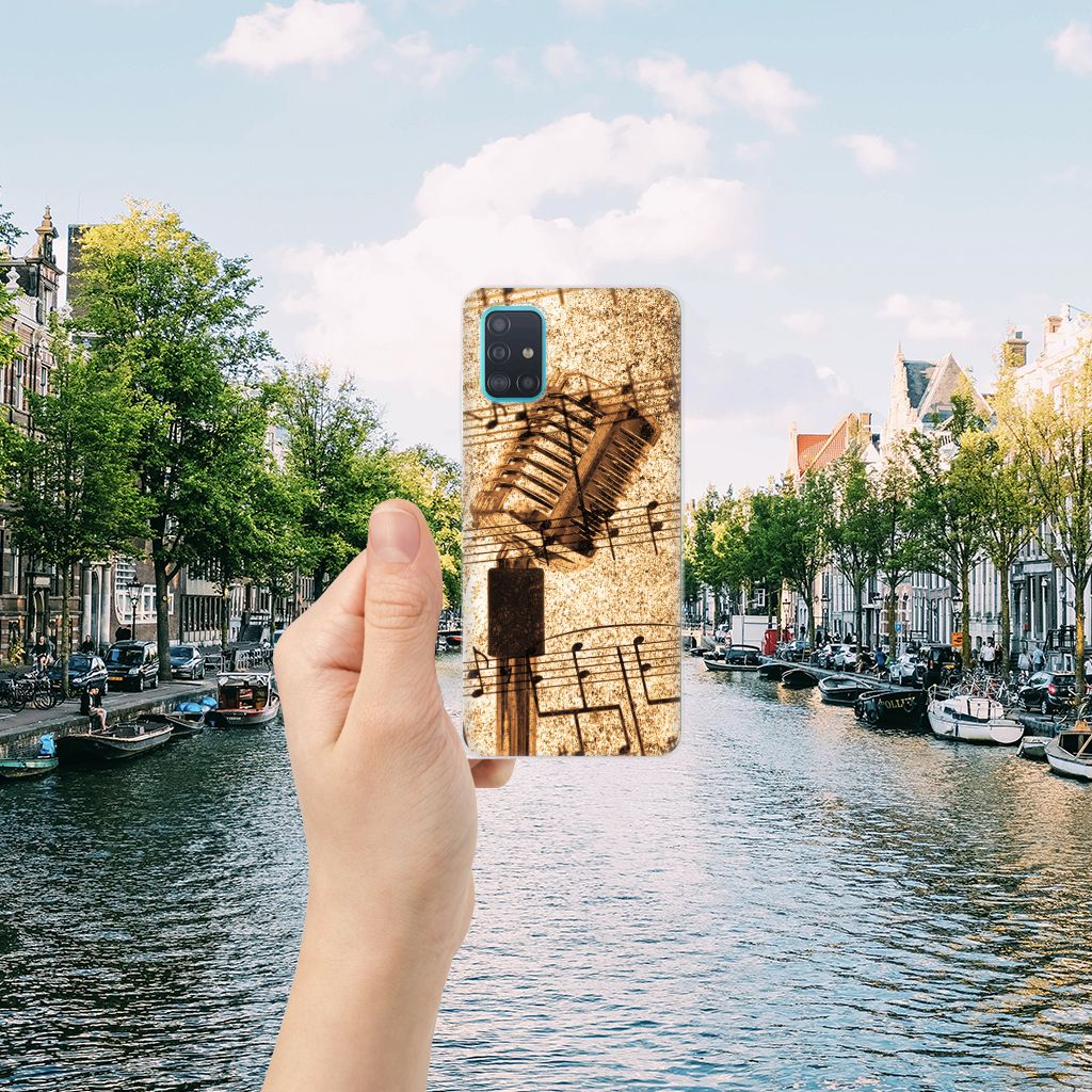 Ben je muzikant, dan is dit design hoesje met Bladmuziek wellicht echt iets voor jou. Met de intrede van nieuwe media wordt de rol van papieren bladmuziek teruggedrongen. Steeds vaker treft men 'bladmuziek' op een beeldschermapparaat, zoals een tablet-pc, e-reader of iPad aan. Gelukkig maar, want als er geen nieuwe media zouden zijn, hadden wij ook nooit onze Phone Case Designer kunnen ontwerpen. Met deze unieke ontwerpmodule kun je jouw favoriete band of artiest op je smartphone hoesje zetten, maar je kunt ook gaan voor dit prachtige design hoesje met print van bladmuziek. Het design staat op een Samsung Galaxy A51 Siliconen Hoesje met foto. Deze case beschermt jouw telefoon vooral aan de achterzijde en zijkanten en is zeer flexibel. Het hoesje blijft aan de zijkanten transparant, de bovenkant is geheel bedrukt. TPU is onbreekbaar materiaal, dat zeer schokabsorberend is. Het hoesje past altijd in je broekzak en combineert uitstekend met een screenprotector.