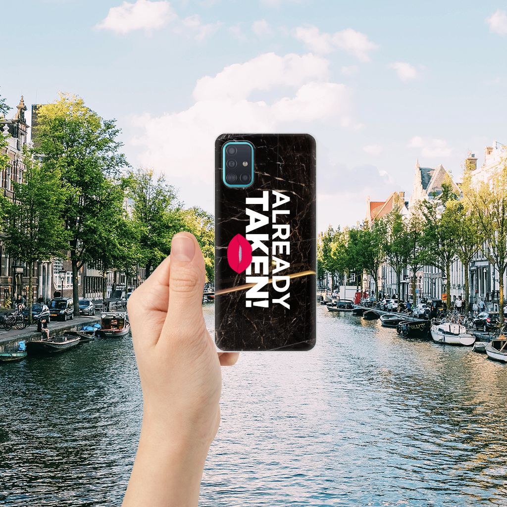 Met deze Samsung Galaxy A51 Siliconen hoesje met naam met Already Taken Black tekst maak je duidelijk dat jouw smartphone een kostbaar bezit is, waar je zeer lang over wilt beschikken. Je telefoon neem je waarschijnlijk vaak ter hand, dus dan zal de boodschap als je over dit hoesje beschikt zeker weten overkomen. De TPU case wordt alleen aan de bovenkant bedrukt en is zeer flexibel. De randen van het hoesje blijven transparant. Wil je een eigen tekst op je hoesje zetten? Dit kan ook, met onze Phone Case Designer. Deze unieke ontwerpmodule is ook geschikt om het design uit te breiden met foto’s, effecten en patronen.