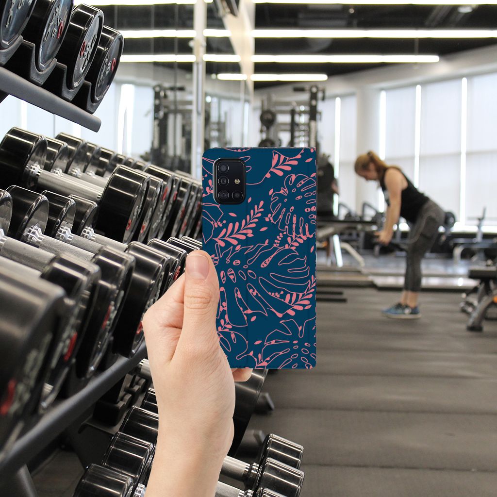 Je voelt je verbonden met de natuur als je kiest voor deze Samsung Galaxy A51 Smart Cover met print van roze bladeren op een blauwe achtergrond. De print bestaat uit verschillende roze bladeren en dit zorgt voor een fraai decoratief geheel. Met dit patroon van roze bladeren op een blauwe achtergrond creëer je een opvallende uitstraling voor jouw smartphone. Jij doet er verstandig aan om je telefoon te beschermen met dit design hoesje met roze bladeren op een blauwe achtergrond, die staan op een stand case. Dit hoesje kenmerkt zich onder meer door het handige vakje aan de binnenzijde en de magnetische sluiting aan de binnenzijde. Voel jij jezelf happy bij een beeld van roze bladeren op een blauwe achtergrond, dan is deze stand case met print een uitstekende optie. Het beschermt jouw telefoon aan alle zijden. Het TPU aan de binnenzijde klemt zich perfect om jouw smartphone.