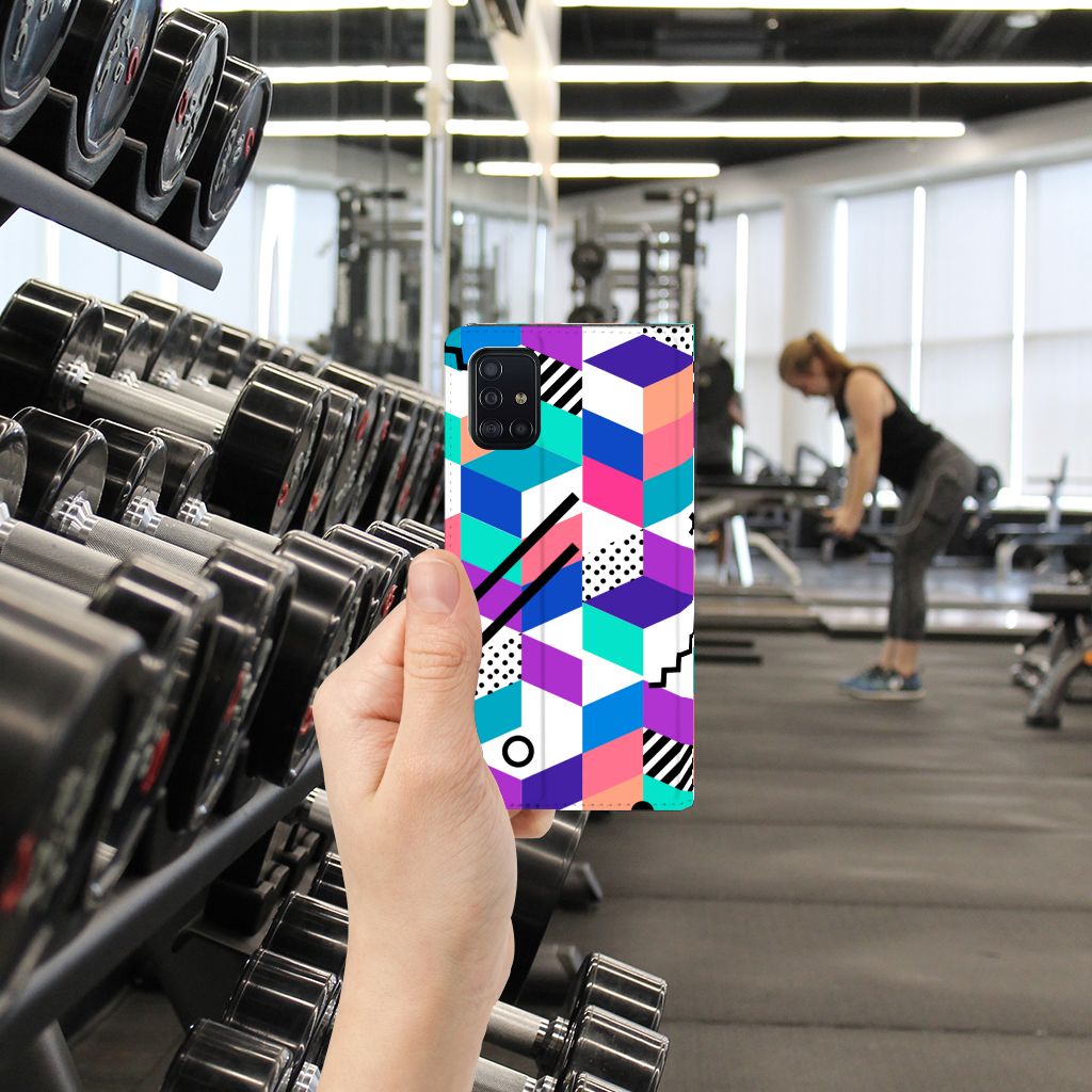 Stand Case Samsung Galaxy A51 Design Blokken Kleurrijk