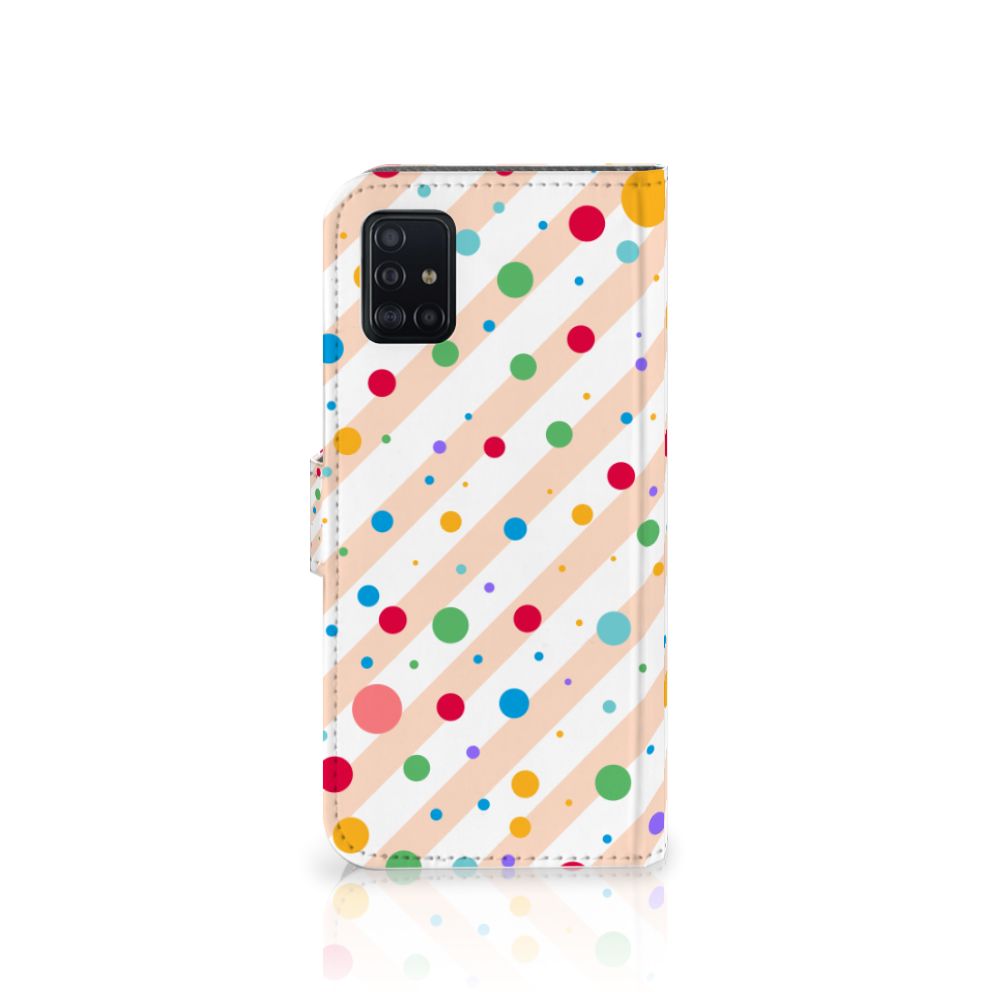 Een Samsung Galaxy A51 Telefoon Hoesje met verschillende kleuren stippen is een schitterende bescherming van jouw smartphone. Het boekhoesje met het design Dots in alle kleuren van de regenboog komt voor jou als geroepen. Maak je geen gebruik van dit zeer mooie hoesje, dan kan het met jouw smartphone een beetje beroerd aflopen. Dit mooie boekhoesje met verschillende kleuren stippen zorgt voor een volledige bescherming van je smartphone en wordt aan alle zijden bedrukt. Sommige stippen staan ook op het magnetische lipje aan de buitenzijde. Verder is de houder aan de binnenzijde van TPU. Jouw telefoon is dus zeer goed opgeborgen en kan geen kant op. Met een hoesje met stippen in verschillende kleuren op alle zijden blijft jouw telefoon volledig in tact. Heb je liever een boekhoesje met stippen in andere opvallende kleuren? Ontwerp dan zelf case met je eigen foto’s en teksten!