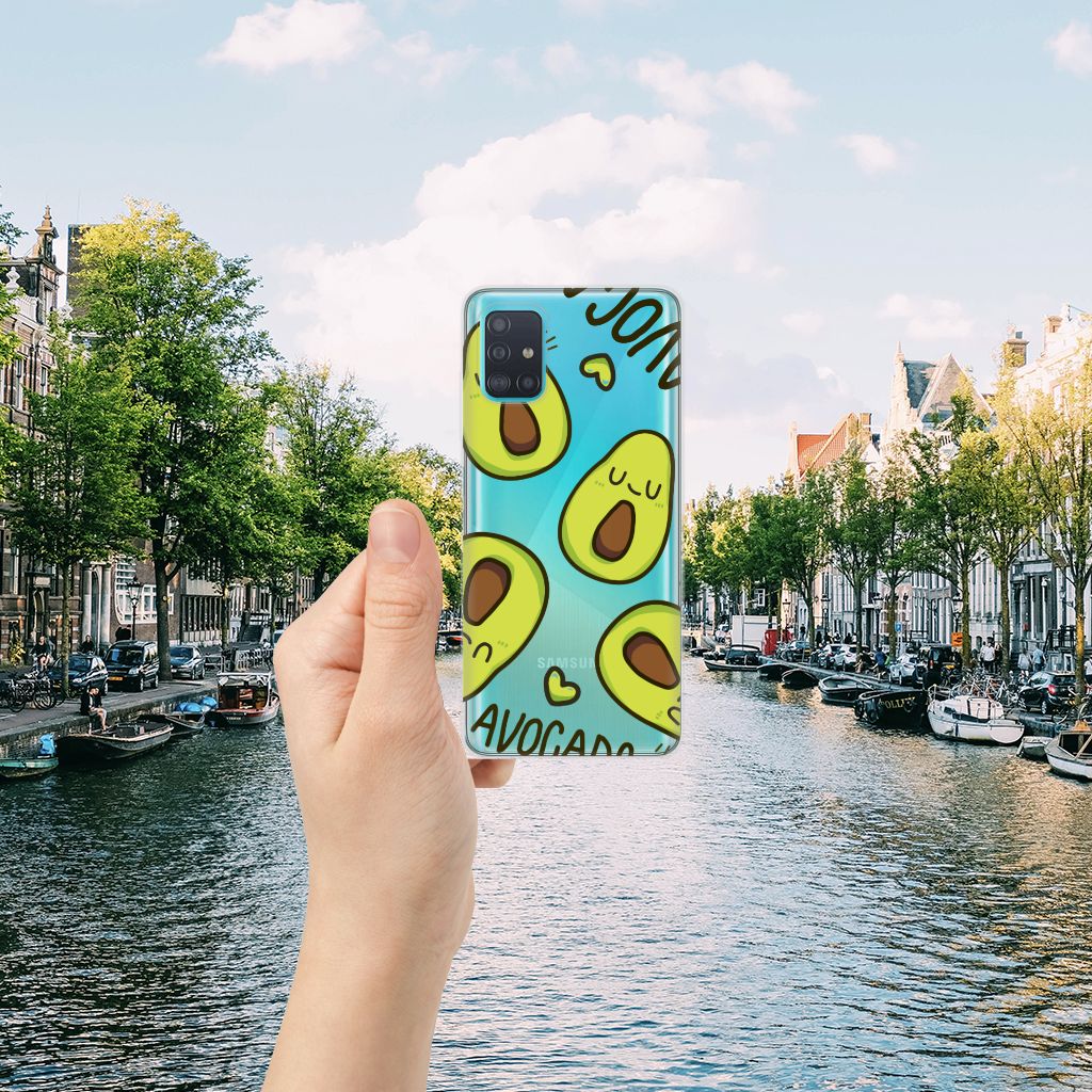 Avocado’s zijn niet alleen heel erg goed voor je, ze zijn ook super leuk op je telefoonhoesje. Dit unieke design vol schattige avocado’s zal jou en iedereen om je heen meteen opvrolijken. Nog een voordeel van dit design: deze avocado’s bederven nooit! Dit leuke Avocado Singing-ontwerp staat op een Telefoonhoesje met Naam voor de Samsung Galaxy A51. Met deze vrolijke groene vruchten op je hoesje val jij zeker op. TPU is flexibel en onbreekbaar. Zo is je telefoon aan de achterkant en de randen heel goed beschermd. De case is aan de bovenkant bedrukt, de randen blijven transparant. Het TPU-hoesje is perfect te combineren met een screenprotector, zo zijn je telefoon en je beeldscherm perfect beschermd.