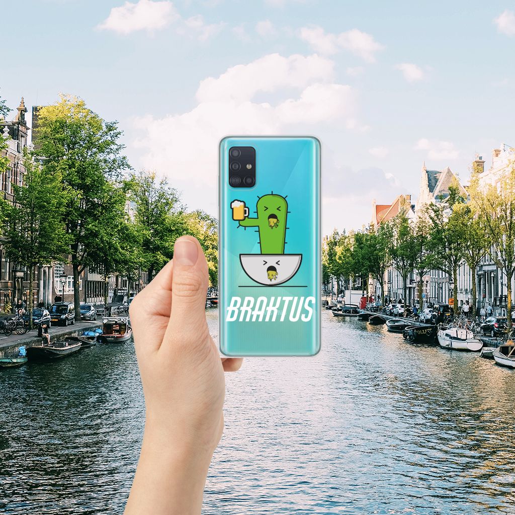Voor de stappers onder ons hebben we dit hele grappige hoesje ontworpen. Deze Braktus case geeft perfect het gevoel weer als jij in de ochtend wakker wordt na een weekendje carnaval vieren: duf en waardeloos. Hopelijk was dit het wel waard en heb je een gezellige tijd gehad. Als aandenken zou je deze Telefoonhoesje met Naam met cactus print kunnen bestellen. Deze design case beschermt jouw Samsung Galaxy A51 vooral aan de achterkant en zijkanten, het scherm blijft deels onbeschermd. Verder heeft het telefoonhoesje opstaande randen, zodat het toestel bij een val de grond niet direct raakt. Een handig en flexibel hoesje, dat altijd in je broekzak past. Bescherming heb je met carnaval natuurlijk wel nodig, want tijdens het hossen kan de telefoon zomaar uit je outfit vallen. Bestel daarom deze TPU case, gemaakt van schokabsorberend materiaal. Alleen de bovenkant van de case wordt bedrukt en de randen blijven transparant.