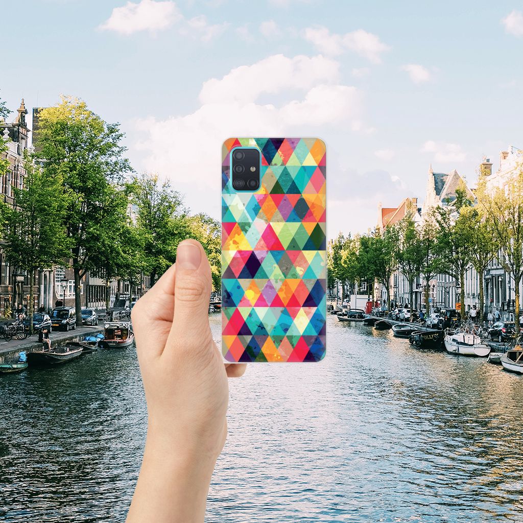 Van dit geruite design hoesje moet je een beetje houden. Maar als je het eenmaal in bezit hebt, ben je waarschijnlijk binnen no time verkocht. Het design heeft ruitjes in alle kleuren van de regenboog en door de grijze achtergrond kan het hoesje enigszins druk overkomen. Maar tegelijkertijd is dit de kracht van het hoesje. Met dit design hoesje Geruit zal je namelijk heel erg opvallen. Dit is voor veel vooral jonge smartphone gebruikers een belangrijk voordeel. Deze geruite print staat op een Samsung Galaxy A51 TPU bumper. Dit zeer flexibele smartphone hoesje heeft alle nodige uitsparingen en past altijd in je broekzak. De case is aan de bovenkant bedrukt, de randen blijven transparant.