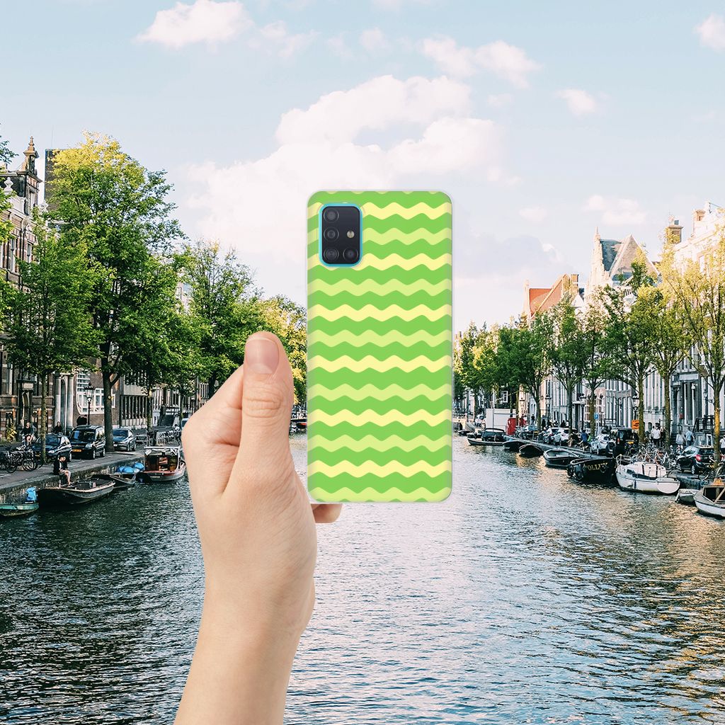 Dit groene design hoesje met groene golven is speciaal ontworpen voor jouw telefoon. We hebben een vleugje geel toegevoegd, zodat er sprake is van variatie. Dit Waves Green hoesje ziet er flitsend uit. Dat kan ook niet anders, als je weet dat we veel energie steken in het bedenken van originele designs. Een heel strak Samsung Galaxy A51 TPU bumper, met zeer veel opties. Past dit groene design hoesje met golven goed bij jou? Bestel het dan vandaag nog, tegen zeer lage kosten. Het design staat op een TPU case. Dit hoesje wordt alleen aan de bovenkant bedrukt en is zeer flexibel. De randen van het hoesje met groene golven blijven transparant en worden niet bedrukt. Met dit hoesje past jouw telefoon altijd in je broekzak.