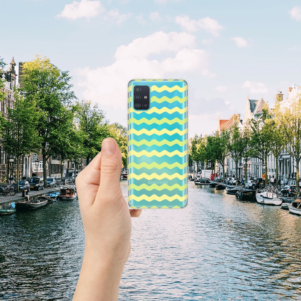 Dit Waves Yellow design hoesje met licht groene en gele golven is speciaal ontworpen voor jouw telefoon. We hebben een vleugje lichtgeel toegevoegd, zodat de case er een beetje spannender en leuker uitziet. Dit licht groene hoesje met licht groene golven ziet er oogstrelend uit. Het wordt in ons eigen magazijn bedrukt, in zeer goede kwaliteit inkt. Wij kunnen dus een zeer duurzaam hoesje met licht groene golven garanderen. Dit hele mooie Samsung Galaxy A51 TPU bumper heeft vele extra’s. Is dit licht groene design hoesje je op het lijf geschreven? Grijp dan nu je kans. Deze TPU case met lichtgroene golven wordt alleen aan de bovenkant bedrukt en is zeer flexibel. De randen van het hoesje met licht groene golven blijven transparant en worden niet bedrukt. Met dit hoesje past jouw telefoon altijd in je broekzak.