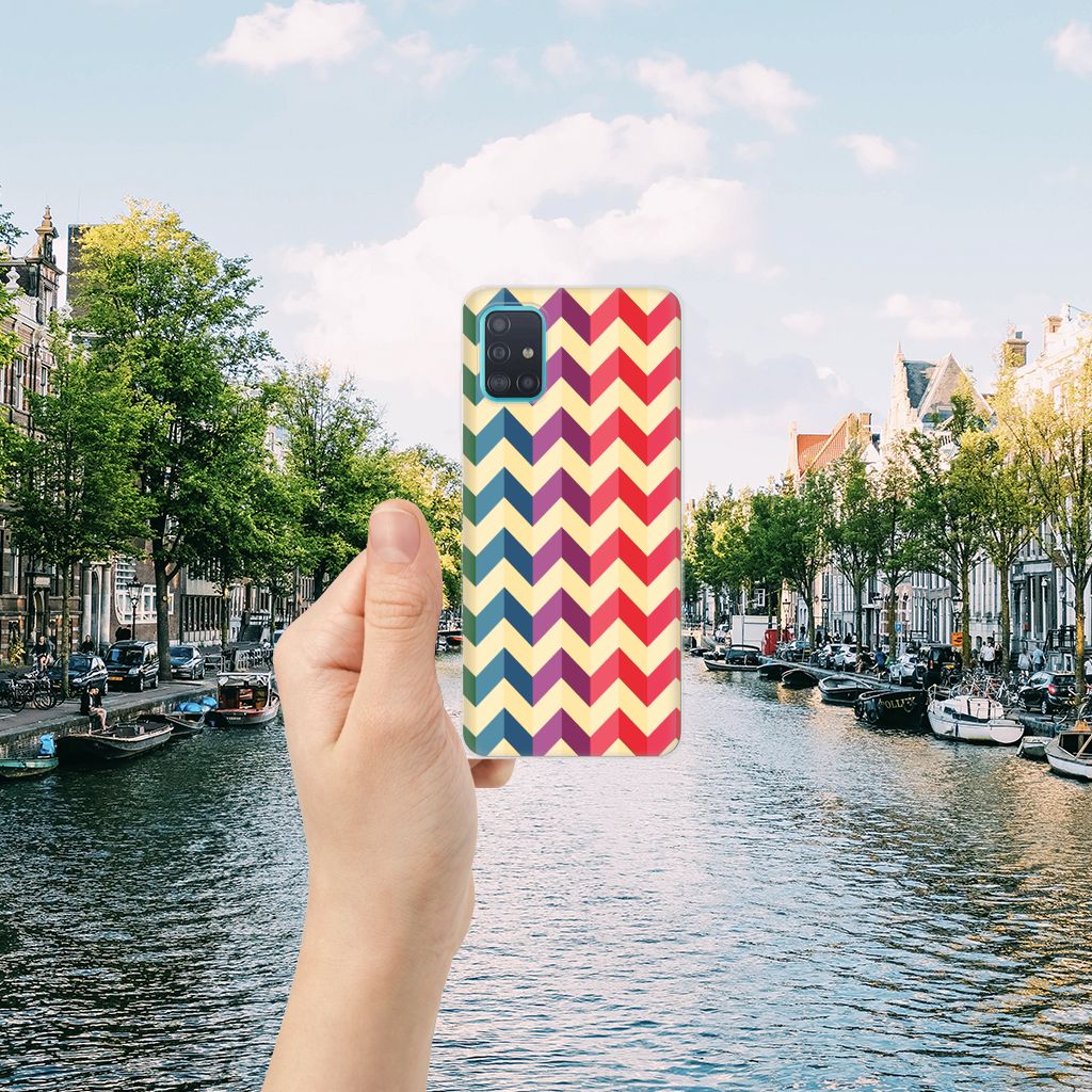 Ben je op zoek naar een uniek telefoonhoesje voor je Samsung Galaxy A51? Dan ben je bij B2C Telecom aan het juiste adres! Speciaal voor jou hebben we dit prachtige Zigzag Color design in onze collectie hoesjes opgenomen. Het design wordt bedrukt op een TPU bumper en is gemaakt van flexibel rubber. Het design wordt alleen aan de bovenkant van het hoesje bedrukt en de randen blijven transparant. Aan de zijkanten zijn uitsparingen gemaakt waardoor je met gemak alle knoppen en poorten kunt bedienen. Wij adviseren om dit hoesje in combinatie met een screenprotector te gebruiken voor een langere levensduur van je telefoon. Wil je dit design hoesje nog iets extra's geven? Voeg dan gratis je naam of een quote toe! Is dit design hoesje toch niet helemaal wat je zocht? Ontwerp dan zelf een hoesje in ons ontwerpprogramma.