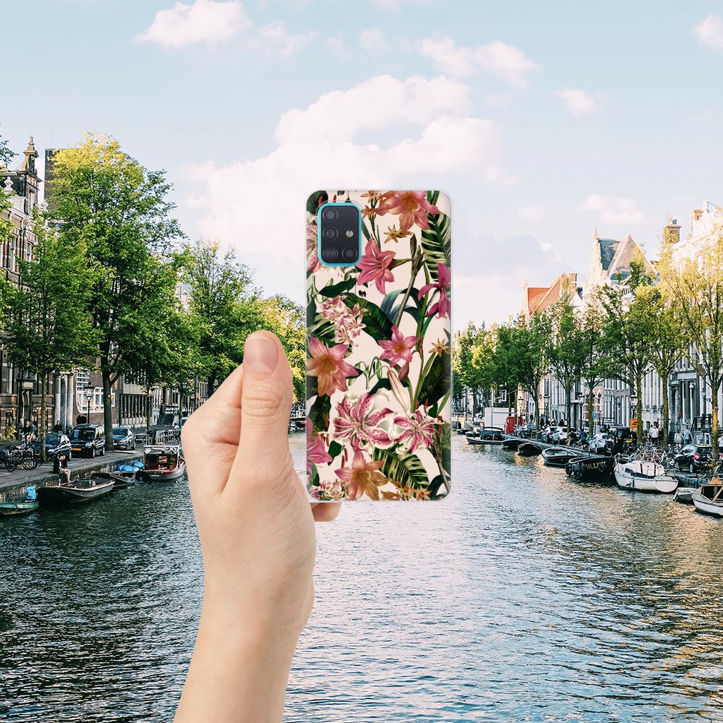 Dit Flowers design is een zegen voor de mens en zijn smartphone. De paarswitte bloemen en groene bladeren op deze Samsung Galaxy A51 TPU Case geven jouw smartphone een zeer sierlijke uitstraling. Je wordt er ook meteen vrolijker van als je aan het appen, mailen of aan het bellen bent. Valt dan je telefoon op de grond, dan zal er dankzij de tpu case met paarswitte bloemen en groene bladeren geen schade ontstaan. Helemaal niet als je er een screenprotector bij hebt gekocht. Onze tpu cases met paarswitte bloemen en groene bladeren zien er zeer prettig uit en zijn heel praktisch, getuige onder meer de opstaande randen en het flexibele materiaal. Alleen de achterkant van de tpu case wordt bedrukt met paarswitte bloemen en groene bladeren, de randen blijven transparant. Op deze tpu case kun je trouwens ook in no time zelf foto’s van jouw favoriete bloemen zetten.