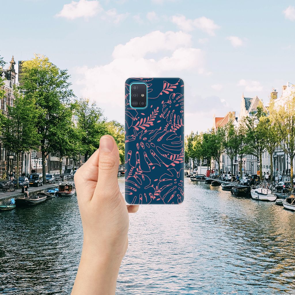 Je voelt je verbonden met de natuur als je kiest voor deze Samsung Galaxy A51 TPU Case met print van roze bladeren op een blauwe achtergrond. De print bestaat uit verschillende roze bladeren en dit zorgt voor een fraai decoratief geheel. Met dit patroon van roze bladeren op een blauwe achtergrond creëer je een opvallende uitstraling voor jouw smartphone. Jij doet er verstandig aan om je telefoon te beschermen met dit design hoesje met roze bladeren op een blauwe achtergrond, die staan op een tpu case. Dit tpu hoesje kenmerkt zich onder meer door de opstaande randen aan de voorzijde, waardoor bij een val van de smartphone het scherm de grond niet raakt. Voel jij jezelf happy bij een beeld van roze bladeren op een blauwe achtergrond, dan is deze tpu case met print een uitstekende optie. Het beschermt jouw telefoon aan de achterkant en zijkanten zeer goed. Het TPU is zeer flexibel en onbreekbaar. De zijkanten van de case blijven transparant.