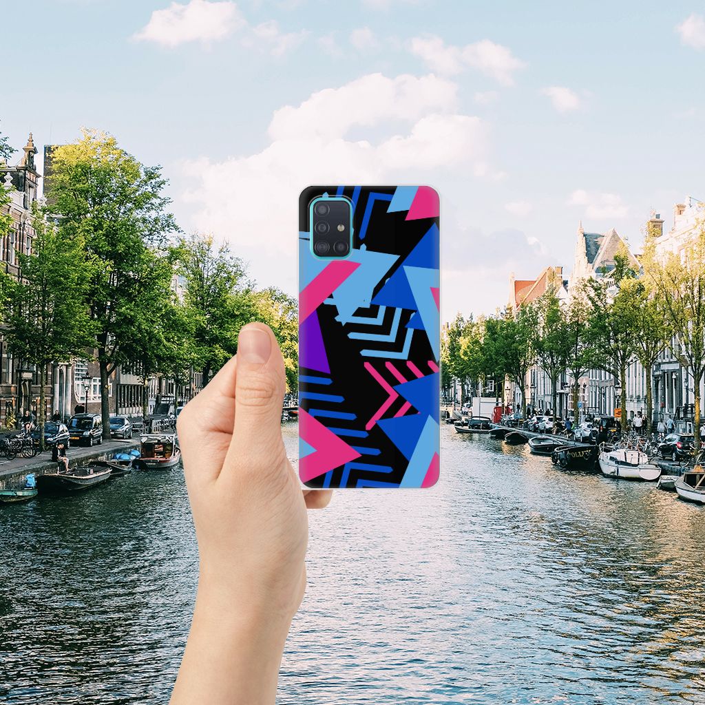 Dit fraaie hoesje met het design Funky Triangle is alles behalve eenvoudig en sober. Dat komt goed uit, want je hebt natuurlijk ook geen doorsnee telefoon gekocht. Mocht je dat wel hebben gedaan, dan wordt hij meteen speciaal als je een Samsung Galaxy A51 TPU Hoesje koopt voor een spotprijsje. Een ding is zeker: opvallen ga je beslist met dit hoesje met paarse, roze en blauwe driehoeken. Jij zult in je element zijn met dit design hoesje met paarse, roze en blauwe driehoeken, omdat het er schitterend uitziet en jouw telefoon zeer goed beschermt. Het smartphonehoesje beschermt jouw telefoon vooral aan de zijkanten en achterkant en wordt alleen aan de bovenzijde bedrukt met paarse, roze en blauwe driehoeken. De zijkanten blijven doorzichtig. De paarse, roze en blauwe driehoeken maken de case helemaal af.
