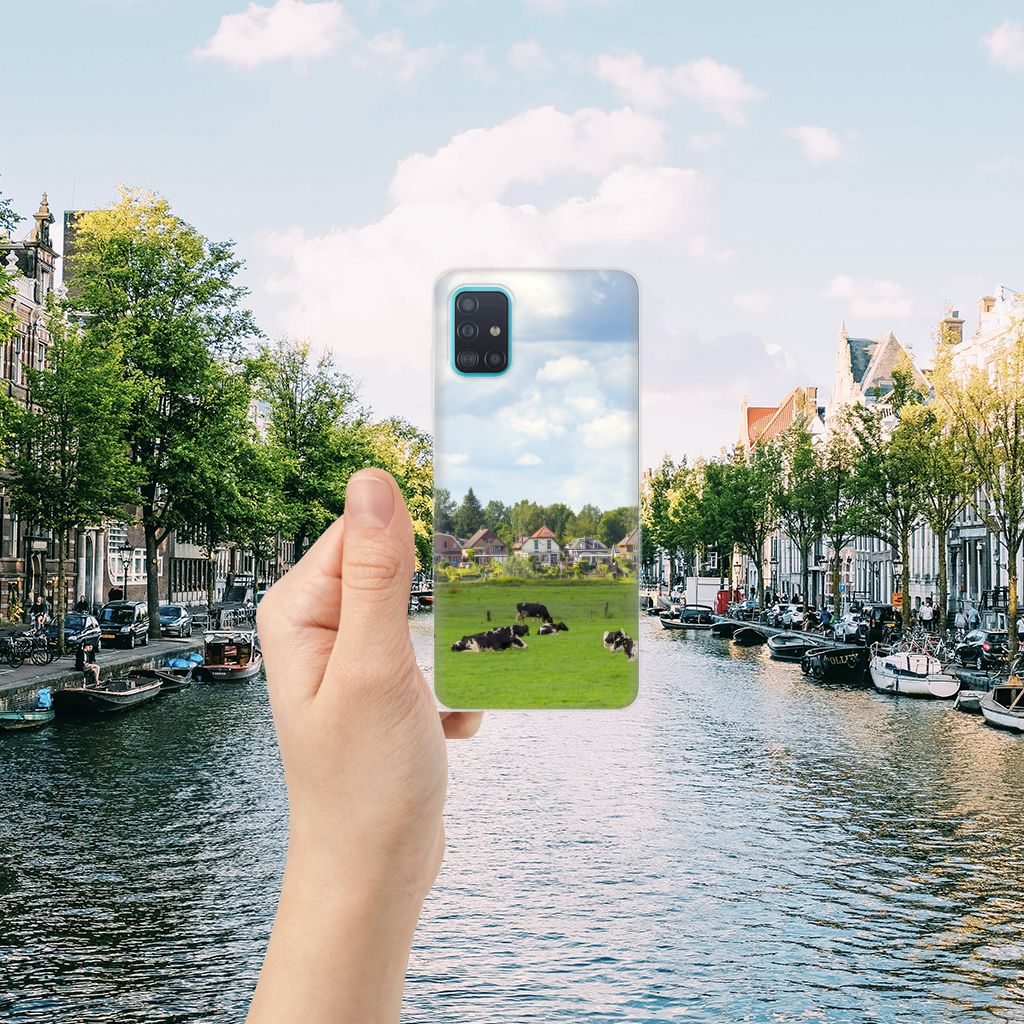 Een koe moet goed verzorgd worden. Door ze buiten te laten lopen en grazen, hebben ze minder kans om ziek te worden. De koe is een kuddedier en graast het liefst met soortgenoten. Dit levert ook mooie plaatjes op, zoals je kunt zien op dit design hoesje met Koeien. Dit smartphone hoesje met koeien ziet er super strak uit en is voorzien van verschillende uitsparingen. Een Samsung Galaxy A51 TPU Hoesje met grazende koeien beschermt jouw smartphone vooral aan de achterkant en zijkanten. De zijkanten zijn transparant, de rest van het hoesje is bedrukt. Koeien hebben graasperioden van ongeveer een uur. Deze worden afgewisseld worden door rust- en herkauwperioden. Ze herkauwen het liefst liggend, behalve wanneer het regent. Zo goed als grazen voelt voor koeien, zo duurzaam zal jouw smartphone worden met dit design hoesje. Het TPU is schokabsorberend en zeer flexibel. Bovendien is het niet te breken. De TPU case past altijd in je broekzak en is zeer handig.