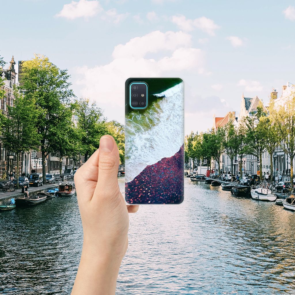 Ben je een beetje een artistiek type? Dan kan je wel eens enthousiast raken van dit smartphonehoesje. ‘Sea in Space’, zo noemt onze grafisch designer dit ontwerp. Dus mensen die van zon en zee kunnen genieten en tegelijkertijd van science fiction houden zullen deze case ongetwijfeld mooi vinden. Een beetje glitter en glamour zou je met een beetje fantasie ook nog wel kunnen ontdekken in dit design hoesje. Dit artistieke kunstwerkje is voor heel weinig geld te bestellen op onze website. Je krijgt er maximale bescherming van je Samsung Galaxy A51 voor terug. Het design staat op een TPU Hoesje. Dit hoesje wordt alleen aan de bovenkant bedrukt en is zeer flexibel. De randen van het hoesje blijven transparant en worden niet bedrukt.