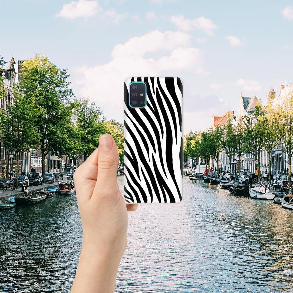 Deze Samsung Galaxy A51 TPU Hoesje met zwart en witte zebra strepen kan exclusief in het bezit van jou komen. Zeker als je er zelf nog unieke teksten en/of beelden aan toevoegt van jezelf. Je hoesje krijgt dan een eigen identiteit, net zoals de witte en zwarte strepen uniek zijn bij iedere Zebra. Deze zijn te vergelijken met de vingerafdrukken bij de mens. De strepen en patronen zijn nooit identiek aan die van een andere zebra. Ben jij toe aan een uniek tpu case? Pak dan dit design met zebra strepen als basis. Het tpu hoesje is zeer flexibel en wordt alleen aan de bovenzijde bedrukt. De randen van dit flexibele hoesje blijven doorzichtig. Een zebra gebruikt de strepen ook om zich te camoufleren in de omgeving om zo uit het zicht te blijven van de roofdieren. Jij zorgt voor de perfecte bescherming van je smartphone met dit design hoesje in zebra kleuren.