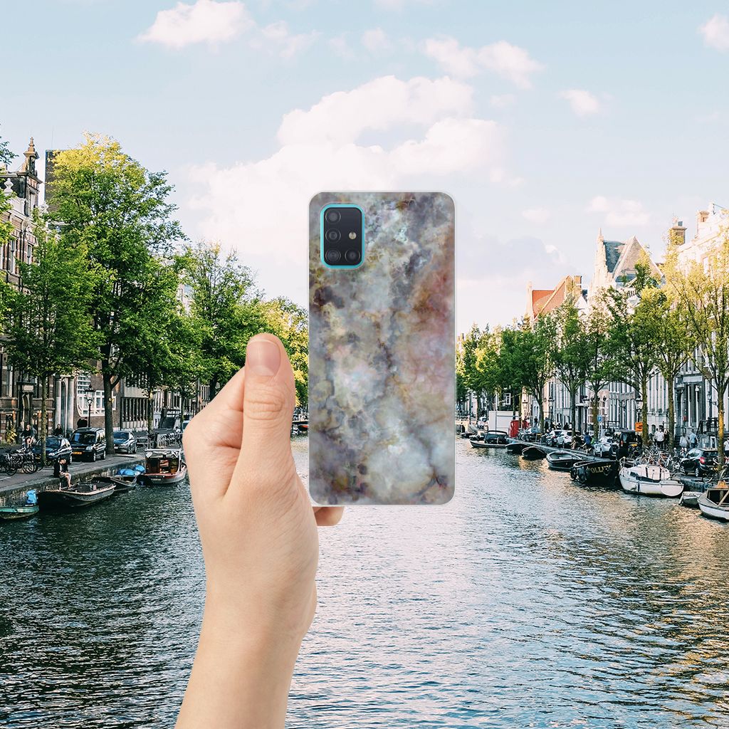 Deze Samsung Galaxy A51 TPU Siliconen Hoesje met Deze Samsung Galaxy A51 TPU Siliconen Hoesje met marmer grijs is geen doorsnee product, maar onderscheidend in alle opzichten. Marmer is een zeer gewaardeerd bouwmateriaal, dit gaat zelfs terug tot de Romeinen, waardoor dit ook een symbolische waarde heeft op dit hoesje. Het tpu hoesje in een grijze kleur beschikt over alle uitsparingen die je nodig hebt en is gemaakt van zeer flexibel en schokabsorberend materiaal. De case wordt aan de achterzijde bedrukt met grijze marmer. Marmer doet het goed op onze telefoonhoesjes. We hebben deze in zeer veel verschillende kleuren in ons assortiment zitten. Je kunt het hoesje met grijze marmer ook gebruiken als basis voor je eigen ontwerp. Behalve het grijs kun je dan nog vele andere kleuren toevoegen. Om nog maar te zwijgen over die mooie foto’s en teksten van jezelf.