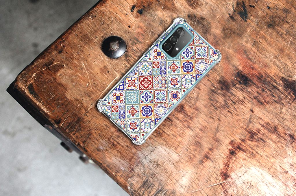 Ben je op zoek naar een uniek telefoonhoesje voor je Samsung Galaxy A52 4G/5G? Dan ben je bij B2C Telecom aan het juiste adres! Speciaal voor jou hebben we dit prachtige Tiles Color design in onze collectie hoesjes opgenomen. Het design wordt bedrukt op een Anti-Shock Hoesje en is gemaakt van flexibel rubber. Het hoesje is perfect voor de actieve smartphonegebruiker door de opstaande randen/hoeken. Denk aan mensen die veel sporten, reizen of wandelen en net iets meer zekerheid willen als het op hun geliefde telefoon aankomt. Het design wordt alleen aan de bovenkant van het hoesje bedrukt en de randen blijven transparant. Aan de zijkanten zijn uitsparingen gemaakt waardoor je met gemak alle knoppen en poorten kunt bedienen. Wij adviseren om dit hoesje in combinatie met een screenprotector te gebruiken voor een langere levensduur van je telefoon. Wil je dit hoesje nog iets extra's geven? Voeg dan gratis je naam of een quote toe! Is dit design hoesje toch niet helemaal wat je zocht? Ontwerp dan zelf een hoesje in ons ontwerpprogramma.