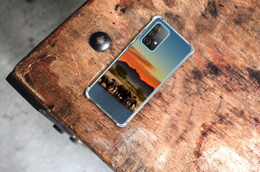 Ben je op zoek naar een uniek telefoonhoesje voor je Samsung Galaxy A52 4G/5G? Dan ben je bij B2C Telecom aan het juiste adres! Speciaal voor jou hebben we dit prachtige Olifanten in onze collectie hoesjes opgenomen. Het design wordt bedrukt op een Case Anti-shock en is gemaakt van flexibel rubber. Het hoesje is perfect voor de actieve smartphonegebruiker door de opstaande randen/hoeken. Denk aan mensen die veel sporten, reizen of wandelen en net iets meer zekerheid willen als het op hun geliefde telefoon aankomt. Het design wordt alleen aan de bovenkant van het hoesje bedrukt en de randen blijven transparant. Aan de zijkanten zijn uitsparingen gemaakt waardoor je met gemak alle knoppen en poorten kunt bedienen. Wij adviseren om dit hoesje in combinatie met een screenprotector te gebruiken voor een langere levensduur van je telefoon. Wil je dit hoesje nog iets extra's geven? Voeg dan gratis je naam of een quote toe! Is dit design hoesje toch niet helemaal wat je zocht? Ontwerp dan zelf een hoesje in ons ontwerpprogramma.