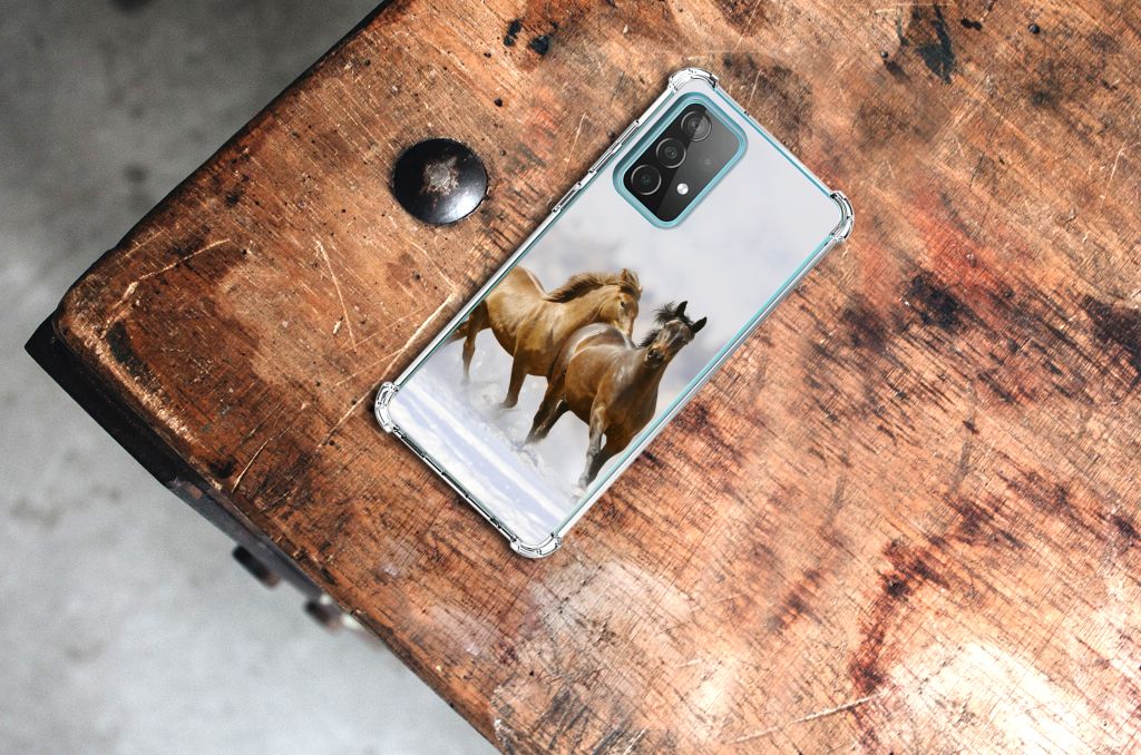 Ben je op zoek naar een uniek telefoonhoesje voor je Samsung Galaxy A52 4G/5G? Dan ben je bij B2C Telecom aan het juiste adres! Speciaal voor jou hebben we dit prachtige Paarden in onze collectie hoesjes opgenomen. Het design wordt bedrukt op een Case Anti-shock en is gemaakt van flexibel rubber. Het hoesje is perfect voor de actieve smartphonegebruiker door de opstaande randen/hoeken. Denk aan mensen die veel sporten, reizen of wandelen en net iets meer zekerheid willen als het op hun geliefde telefoon aankomt. Het design wordt alleen aan de bovenkant van het hoesje bedrukt en de randen blijven transparant. Aan de zijkanten zijn uitsparingen gemaakt waardoor je met gemak alle knoppen en poorten kunt bedienen. Wij adviseren om dit hoesje in combinatie met een screenprotector te gebruiken voor een langere levensduur van je telefoon. Wil je dit hoesje nog iets extra's geven? Voeg dan gratis je naam of een quote toe! Is dit design hoesje toch niet helemaal wat je zocht? Ontwerp dan zelf een hoesje in ons ontwerpprogramma.